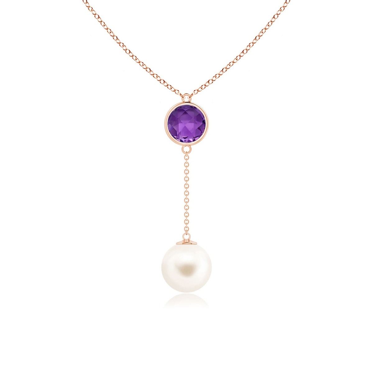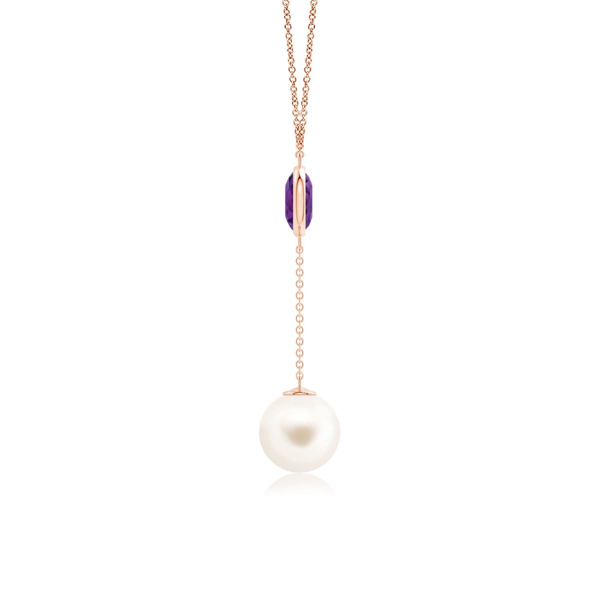 ANGARA Freshwater Pearl & Amethyst Lariat Necklace in 14K Gold (AAA | 10mm)