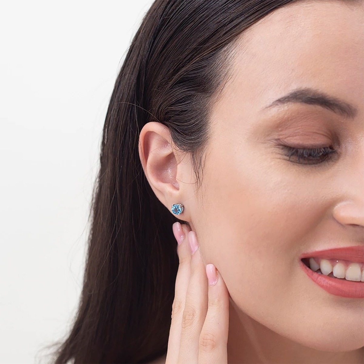 Exude effortless elegance from day to night with these Natural Swiss Blue Topaz solitaire stud earrings. Timeless and versatile, these are a jewelry box must-have. With these Sterling Silver solitaire stud earrings, you can easily transition from office hours to a party night without missing a beat.