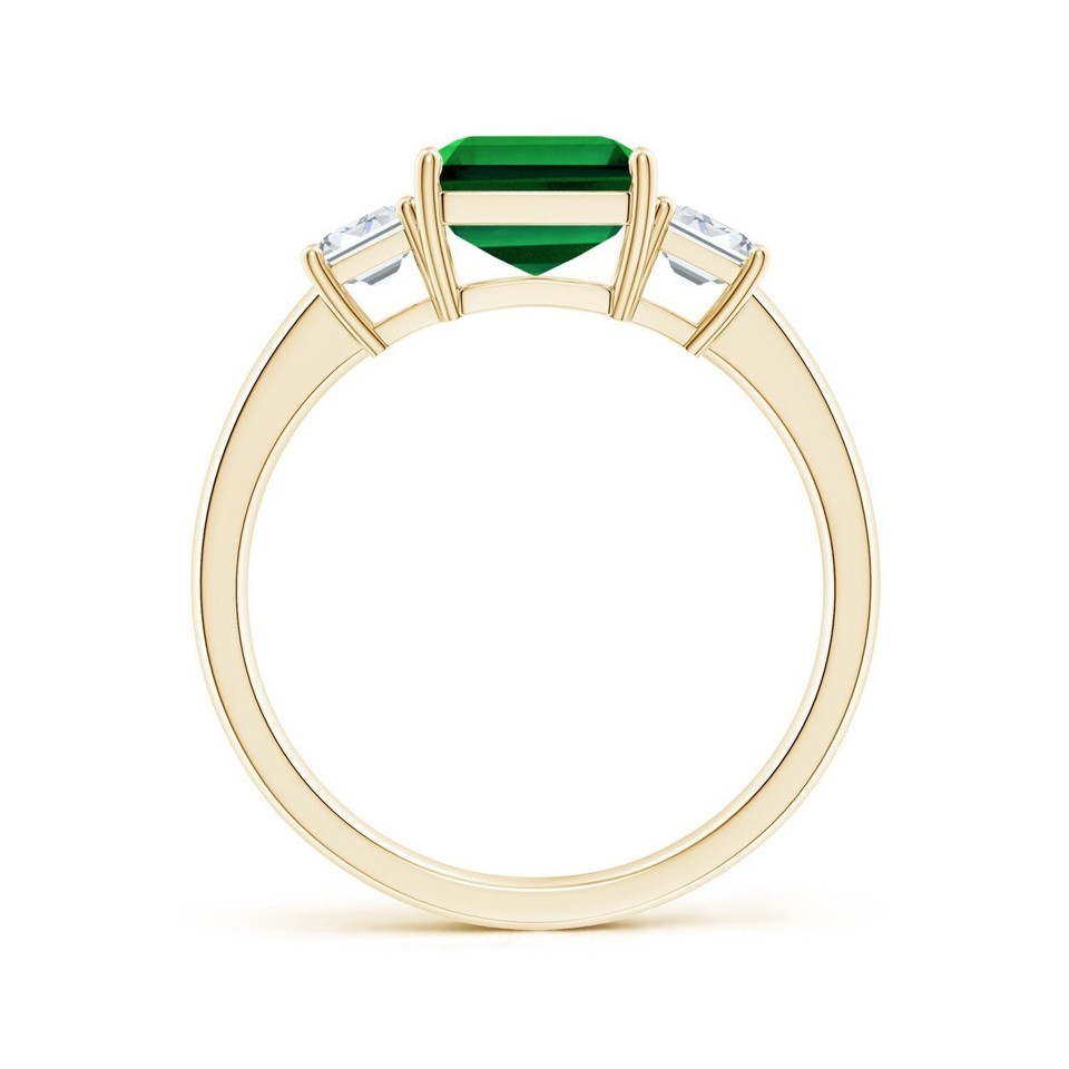 ANGARA 2.89 Ct Lab Grown Emerald and Diamond Three Stone Ring in 14K Yellow Gold