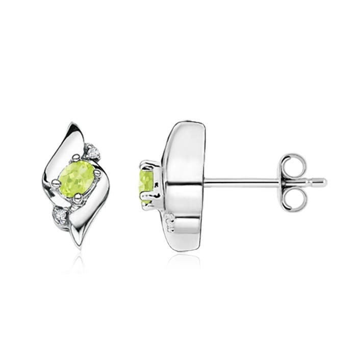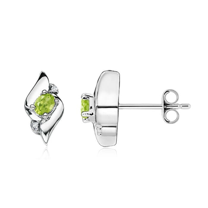 ANGARA Peridot and Diamond Shell Stud Earrings in Silver for Women (4x3mm)