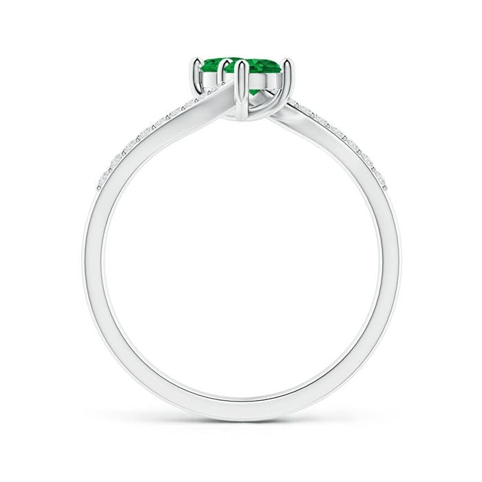ANGARA 0.5 Ct Two Stone Emerald Bypass Ring with Diamond Accents in 14K Gold