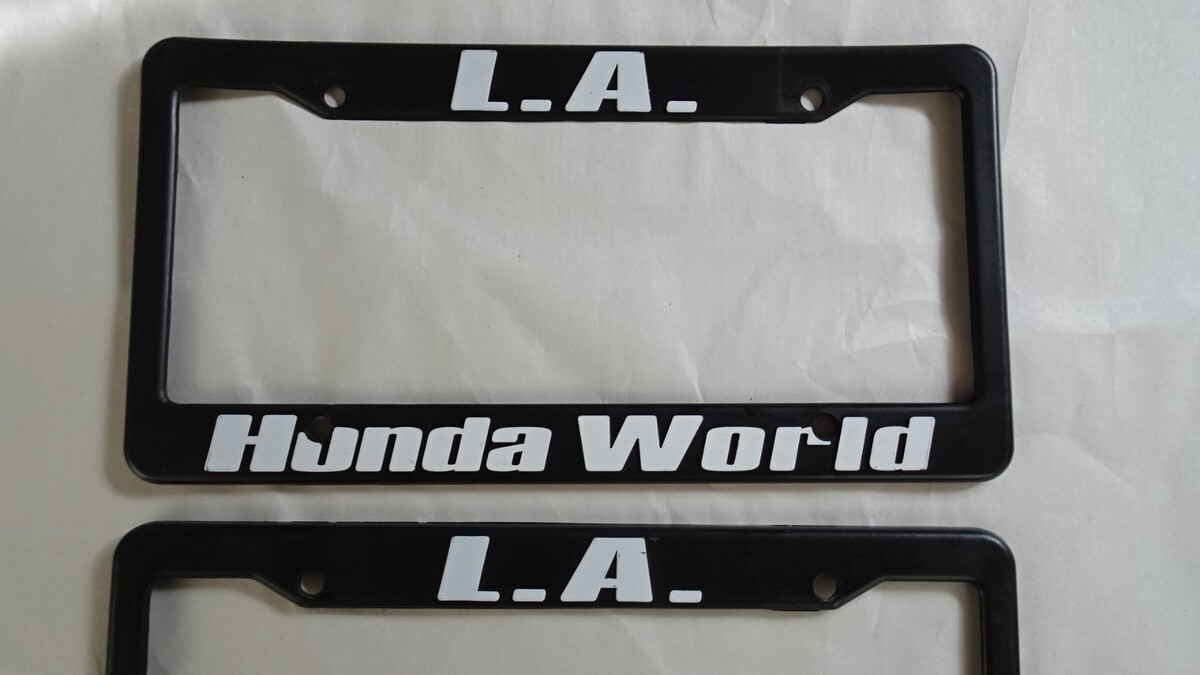 Pair of 2X L.A. Los Angeles Honday World Dealer License Plate Frame Plastic