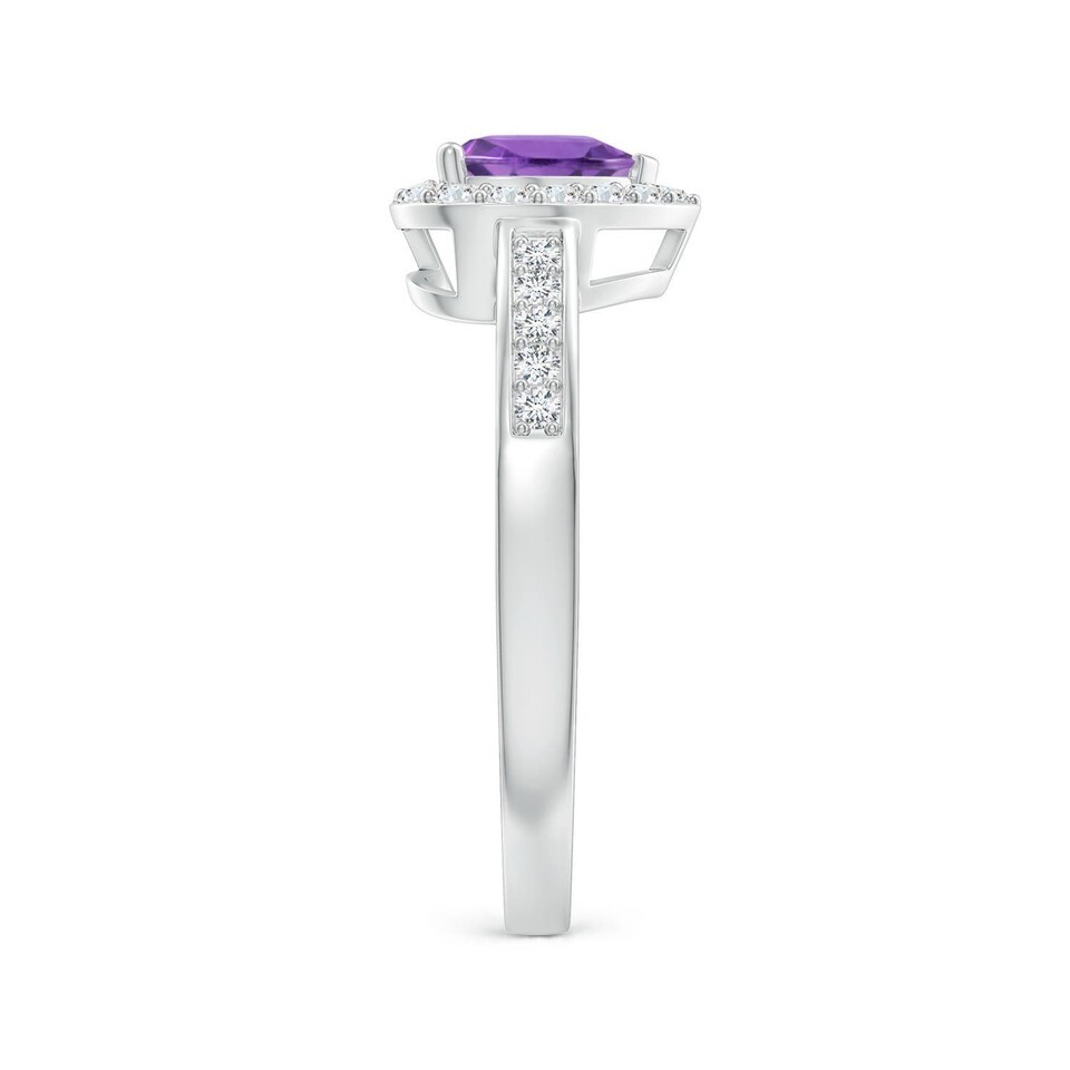 ANGARA 0.98 Ct Heart-Shaped Amethyst Halo Ring with Diamond in 14K White Gold
