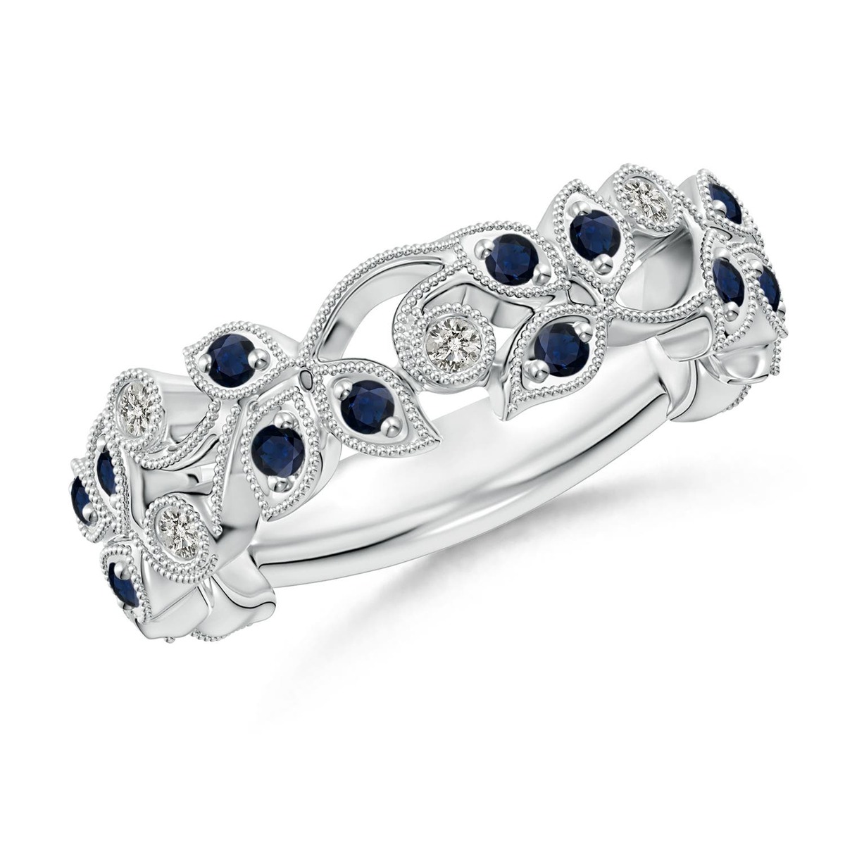 ANGARA 0.44 Ct Nature Inspired Blue Sapphire & Diamond Vine Ring in 14K Gold