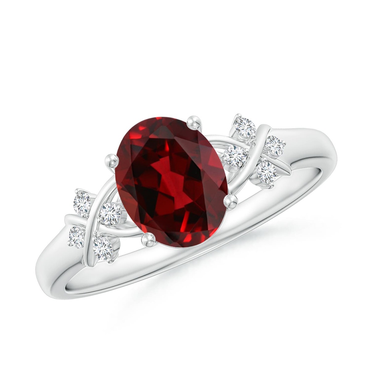 ANGARA 1.53 Ct Solitaire Oval Garnet Criss Cross Ring with Diamonds in 14K Gold