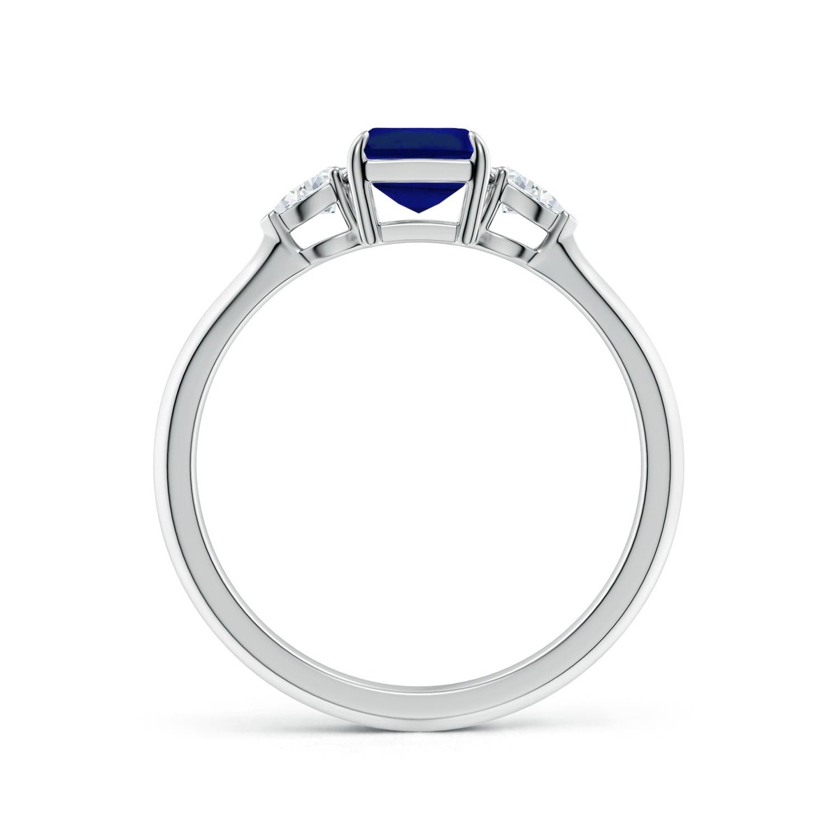 This 14k solid gold three-stone engagement ring is a beautiful token of your past, present and future. It features a prong-set lab-grown emerald-cut blue sapphire held between pear diamonds. This piece will certainly steal your women's heart.