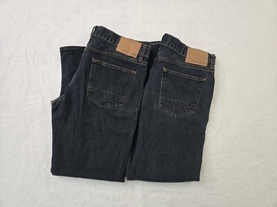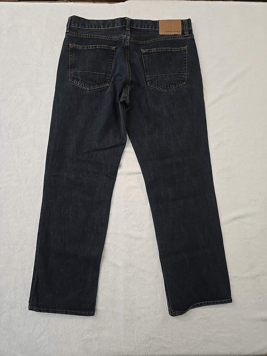 This product is a lot of 2 2017 Aeropostale straight leg jeans for men, in a size 34x32 (34x30) with a relaxed fit. The jeans are a solid dark wash denim, made from a cotton blend material. They feature a zip and button closure, a mid-rise waist, and a 5-pocket design. The jeans come in a classic blue color, making them versatile for various seasons and occasions. With their solid pattern and relaxed fit, these Aeropostale jeans are perfect for a stylish and comfortable look.