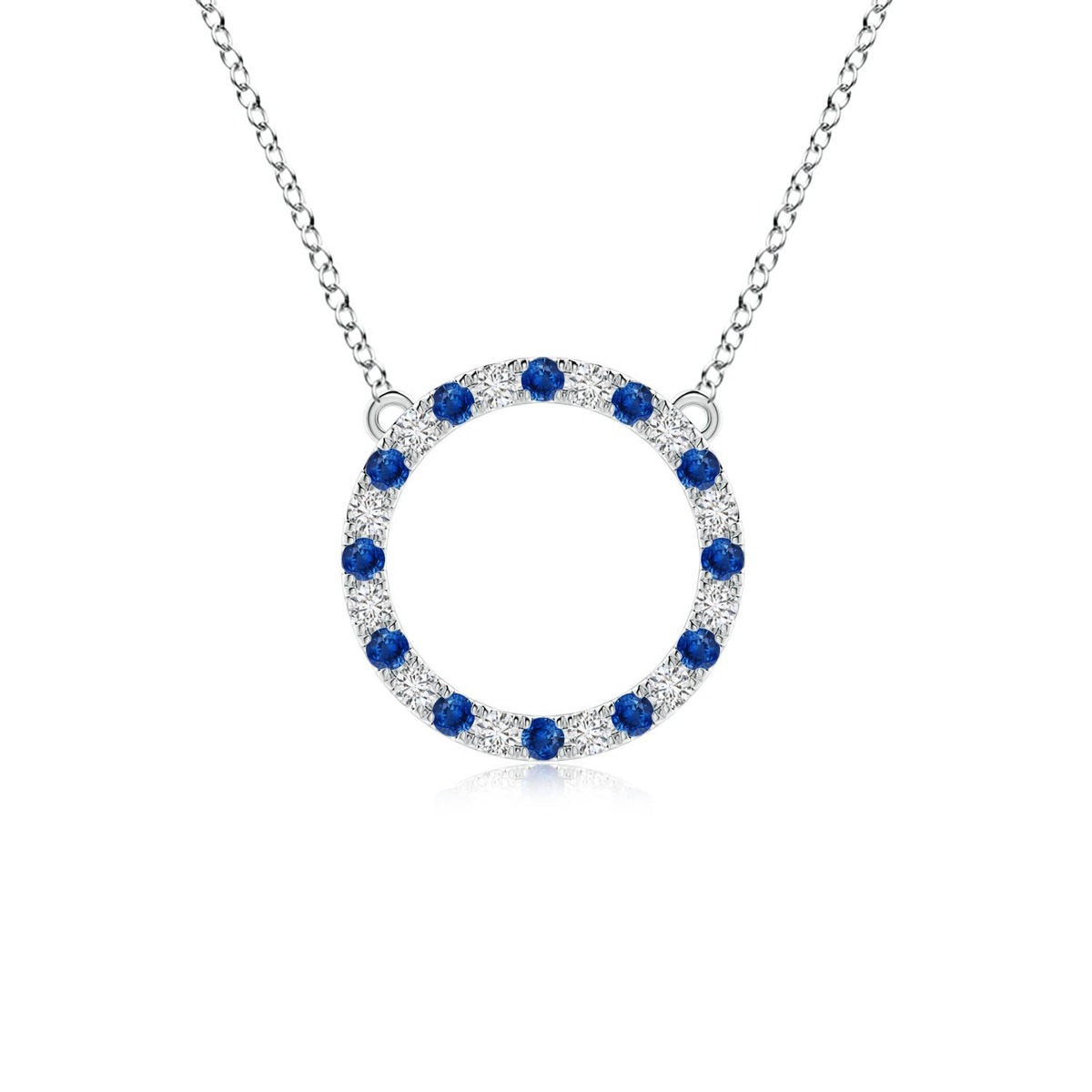 Exuding simple elegance, this dazzling pendant features an open circle studded with mesmerizing blue sapphires and sparkling diamonds. The round gemstones look fascinatingly beautiful and appear to be floating on the chain. This alluring blue sapphire and diamond circle pendant is crafted in 14k solid gold.