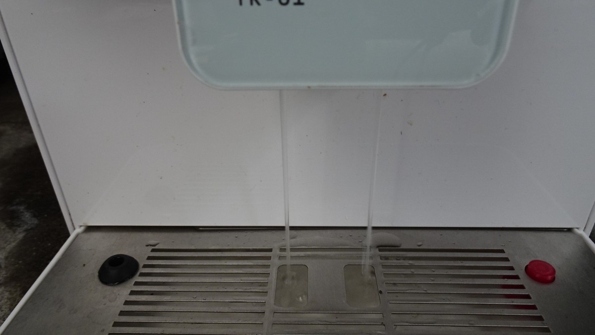 This unit has been tested and powers on properly. Touchscreen responds correctly and all drink options display as shown. The machine dispenses water and milk, and internal components appear intact.