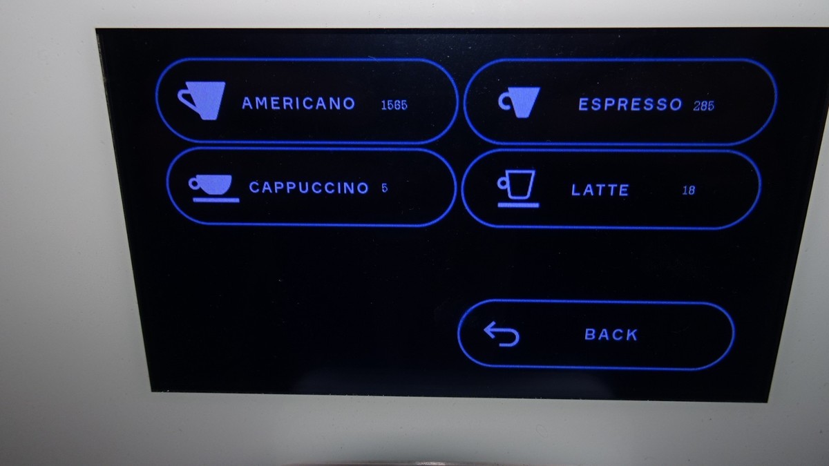 ? Drink options include Americano, Espresso, Cappuccino, Latte, Milk, and Hot Water