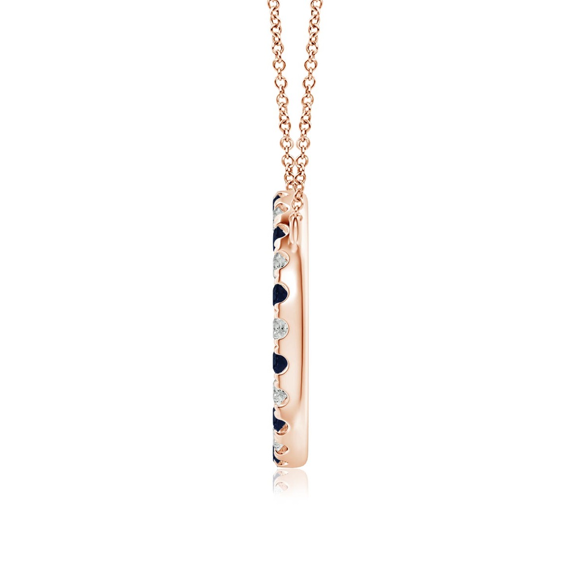 Exuding simple elegance, this dazzling pendant features an open circle studded with mesmerizing blue sapphires and sparkling diamonds. The round gemstones look fascinatingly beautiful and appear to be floating on the chain. This alluring blue sapphire and diamond circle pendant is crafted in 14k solid gold.