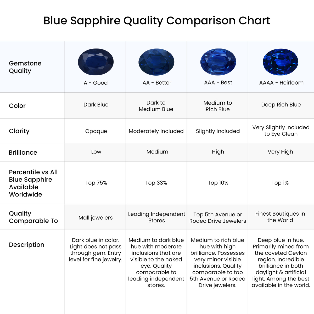 Celebrated for its rich blue color and stunning brilliance, blue sapphire exudes an air of luxury and royalty. It symbolizes strength, power, wisdom and wealth, and is the official birthstone for September. Moreover, it's also the traditional gemstone for the 5th and 45th wedding anniversaries.