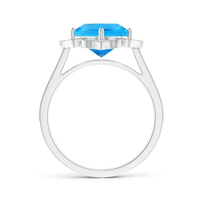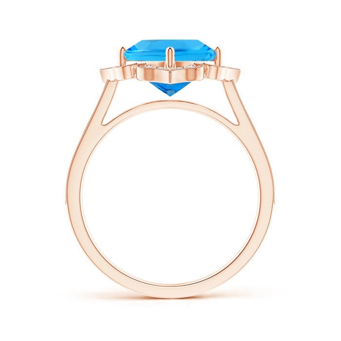Featuring rounded corners, the cushion-cut swiss blue topaz creates a soft and elegant silhouette. This shape combines classic elegance with a hint of vintage charm.