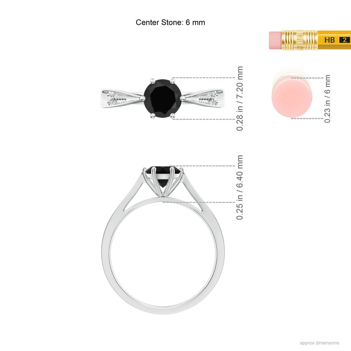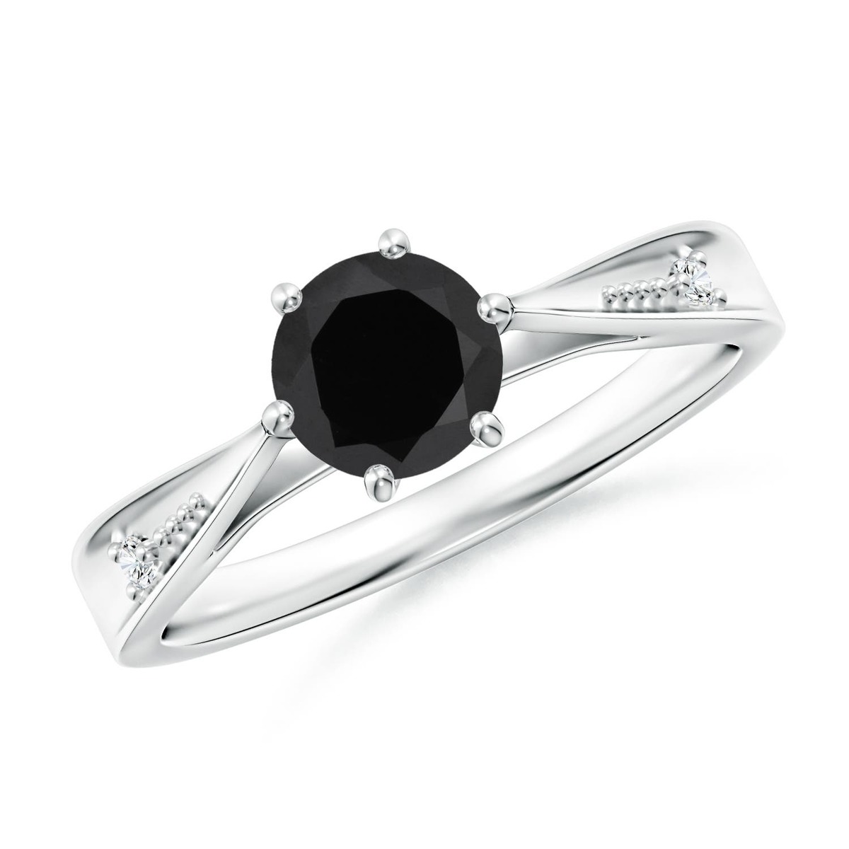 ANGARA Black Onyx Solitaire Ring with Diamonds in Silver for Women (6mm)