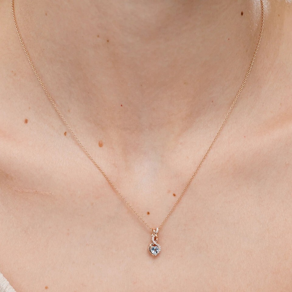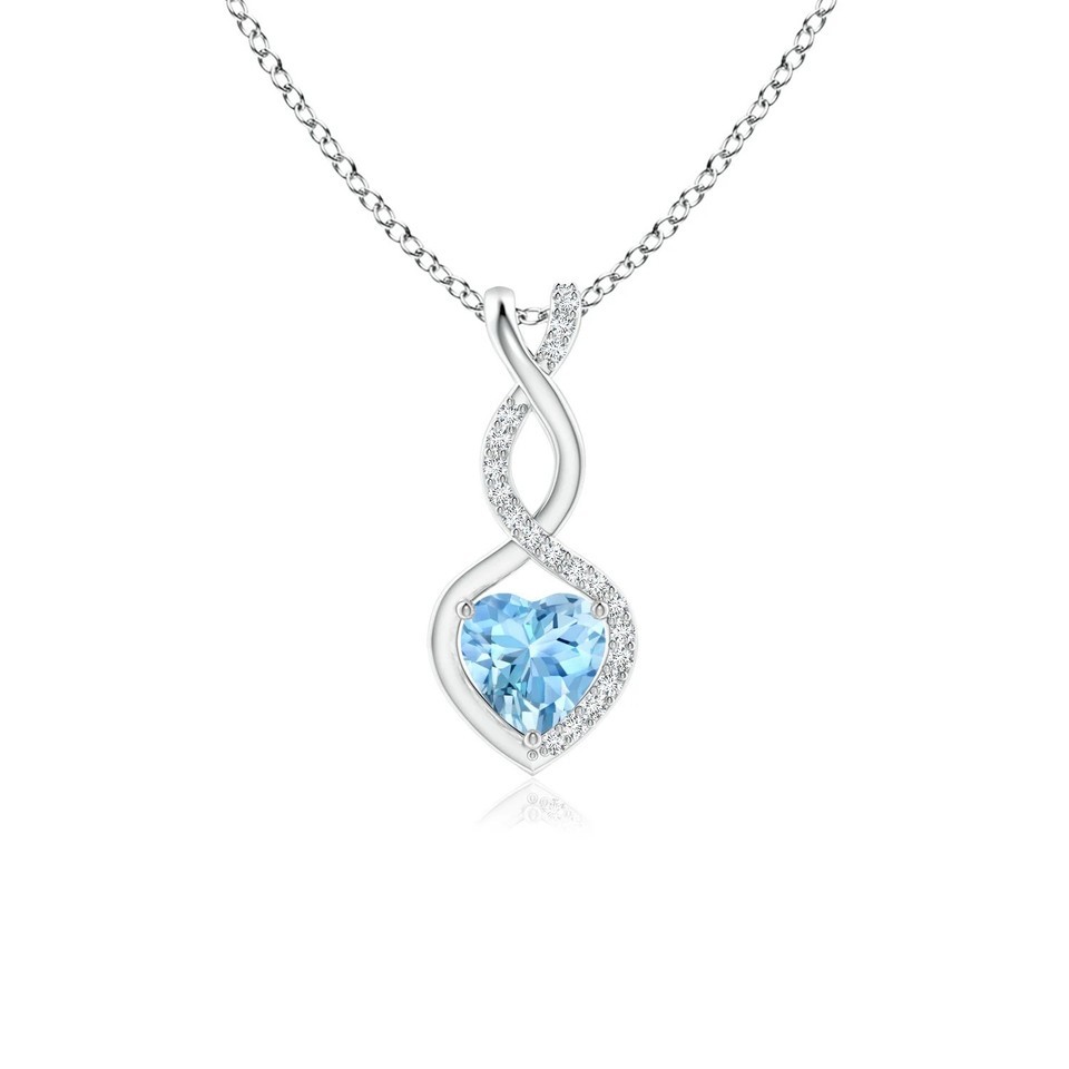 Angara Natural Heart-Shaped Aquamarine Infinity Pendant with Diamond in Silver