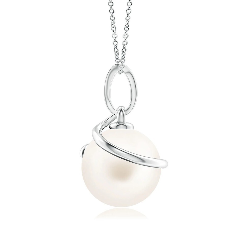 Angara Freshwater Cultured Pearl Spiral Pendant with Diamonds in 14K White Gold
