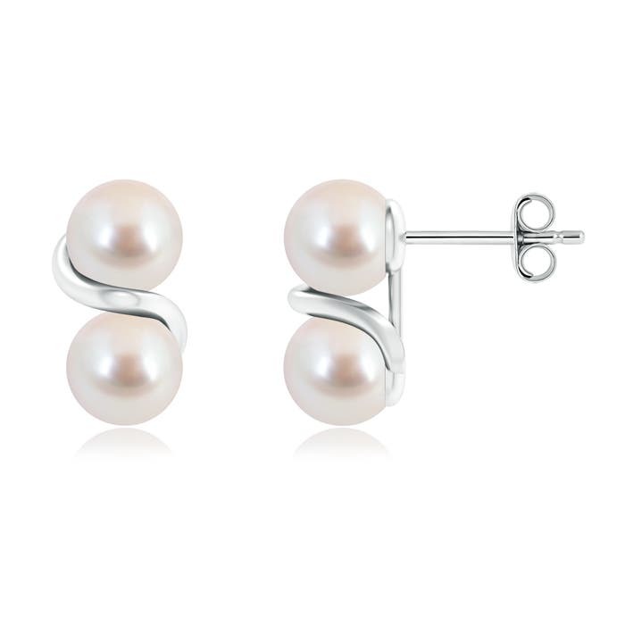 Authenticity Guarantee ANGARA Two Stone Japanese Akoya Pearl Earrings with M...