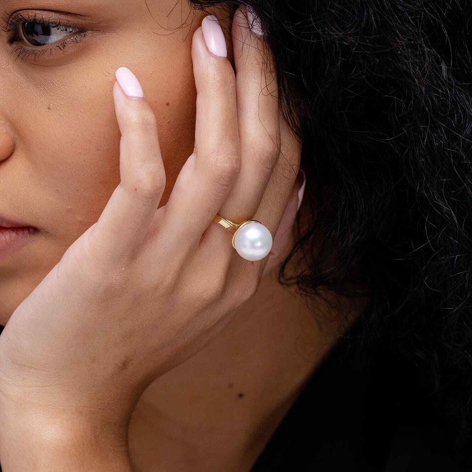 Authenticity Guarantee ANGARA 12MM South Sea Cultured Pearl Ring in 14K Yell...
