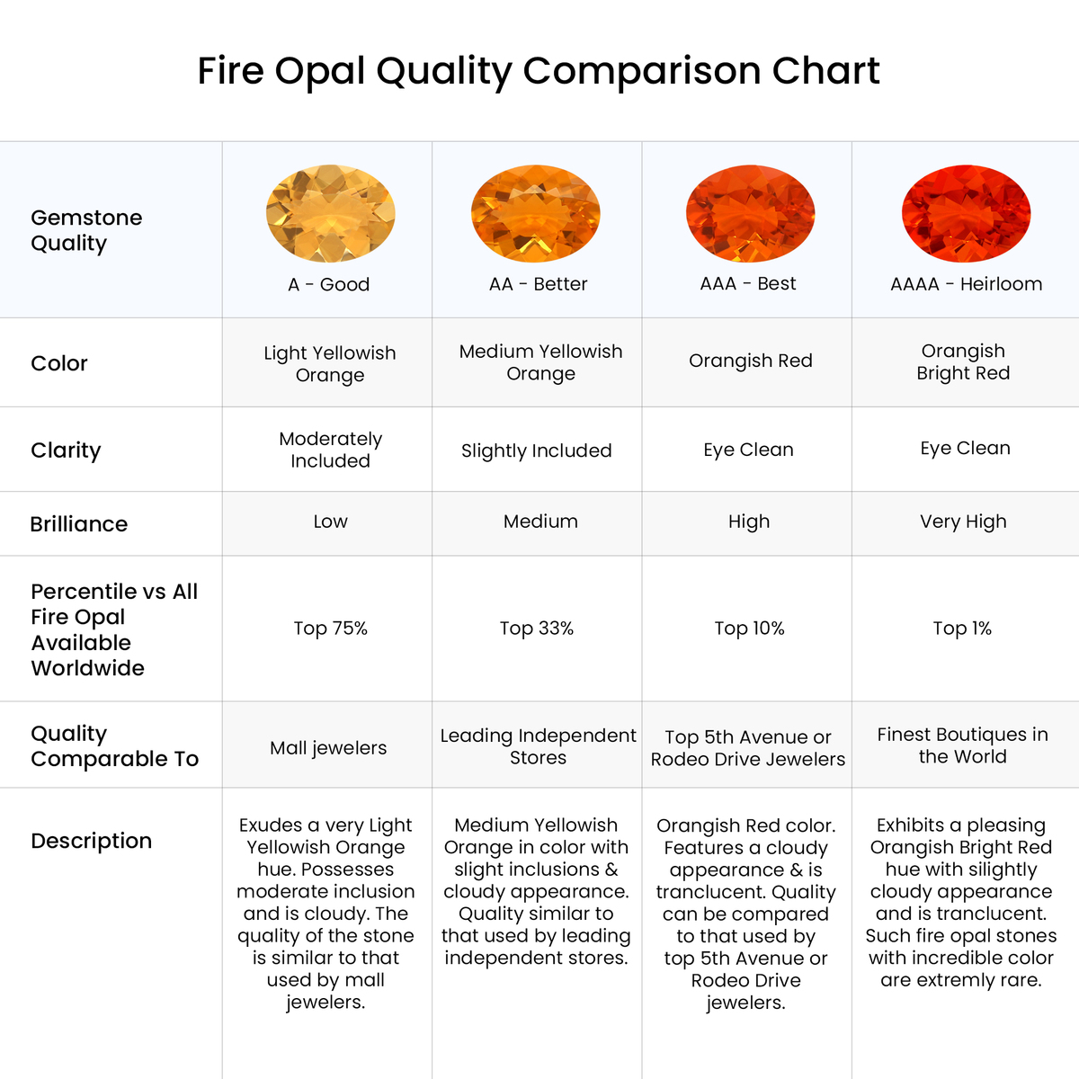Stone Specification: Natural Fire Opal | 5 mm | Grade AA-Better