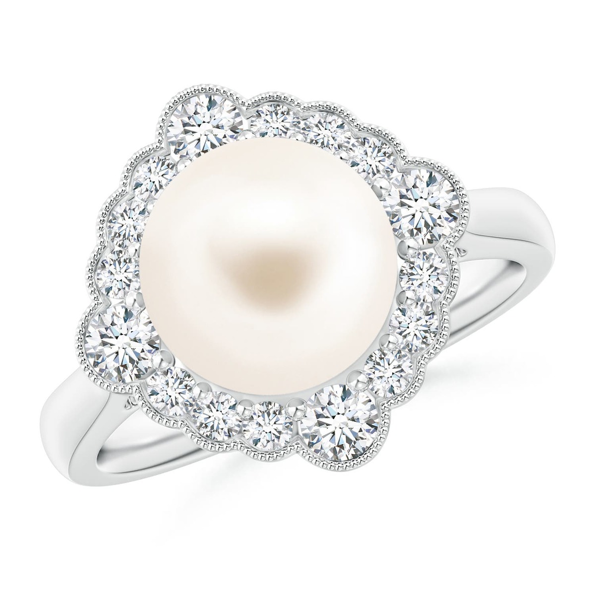 ANGARA Freshwater Pearl Cushion Halo Engagement Ring 14K Solid Gold (AAA, 9mm)