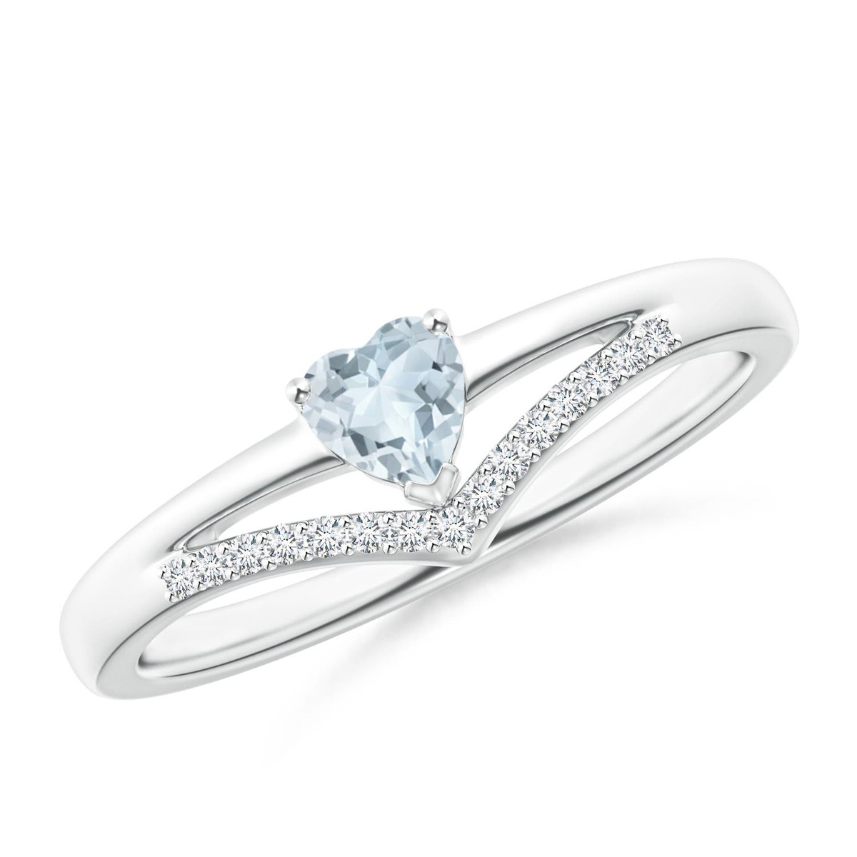 ANGARA Natural Aquamarine and Diamond Chevron Ring in Sterling Silver (4mm)