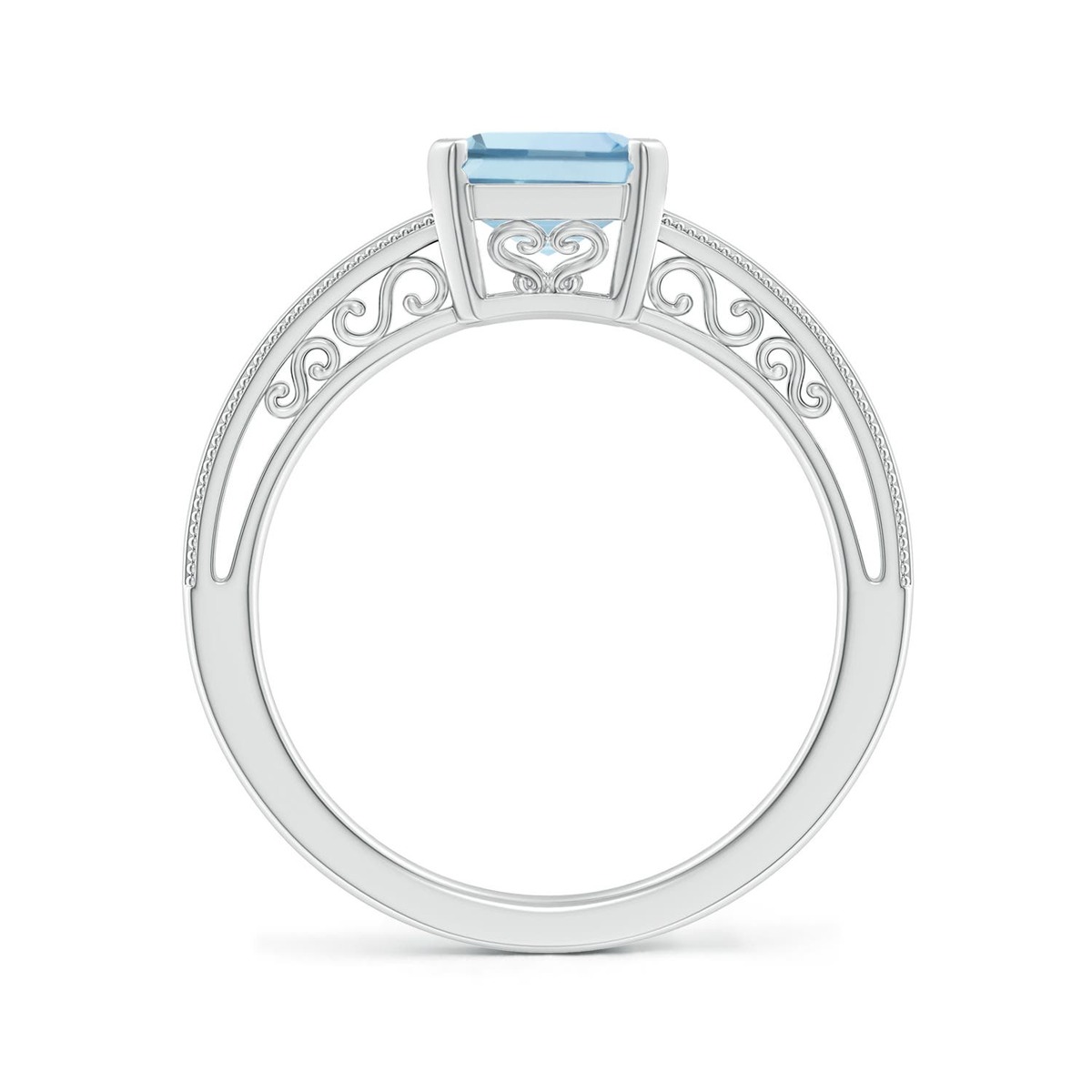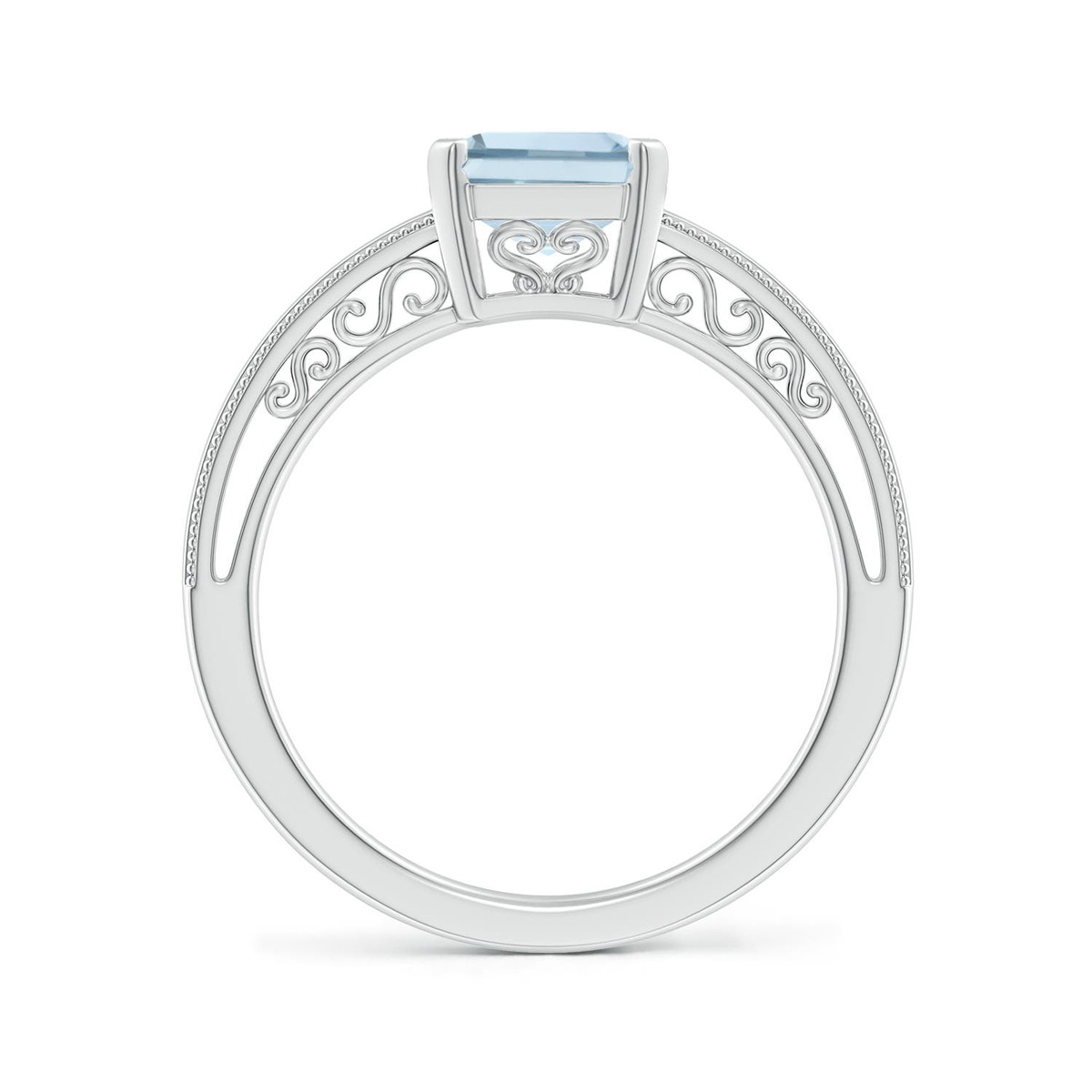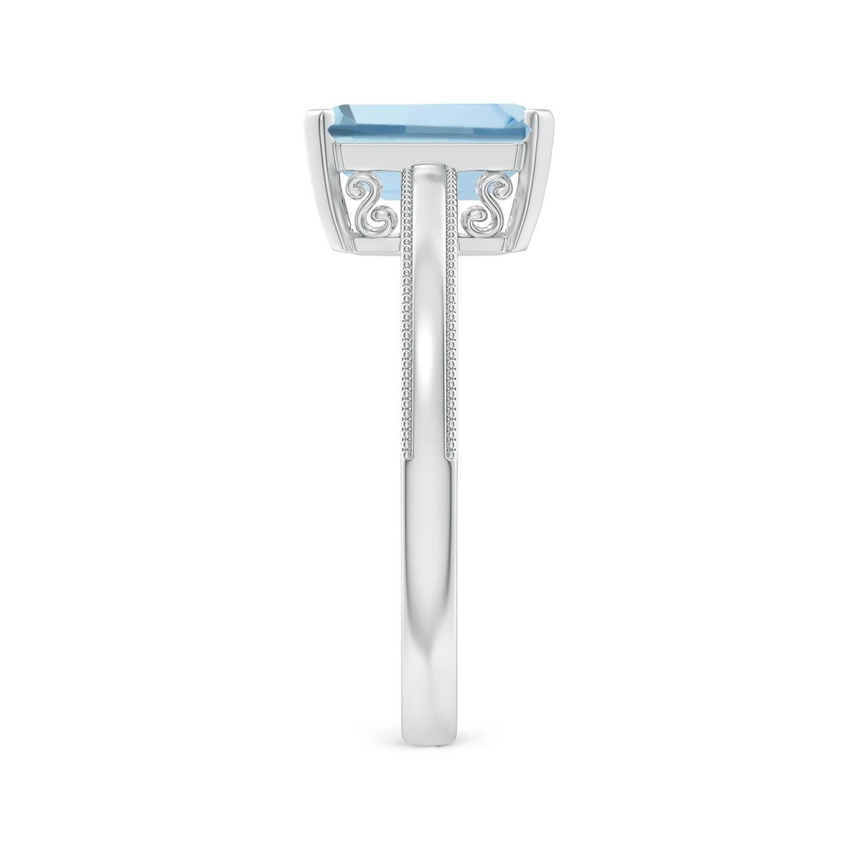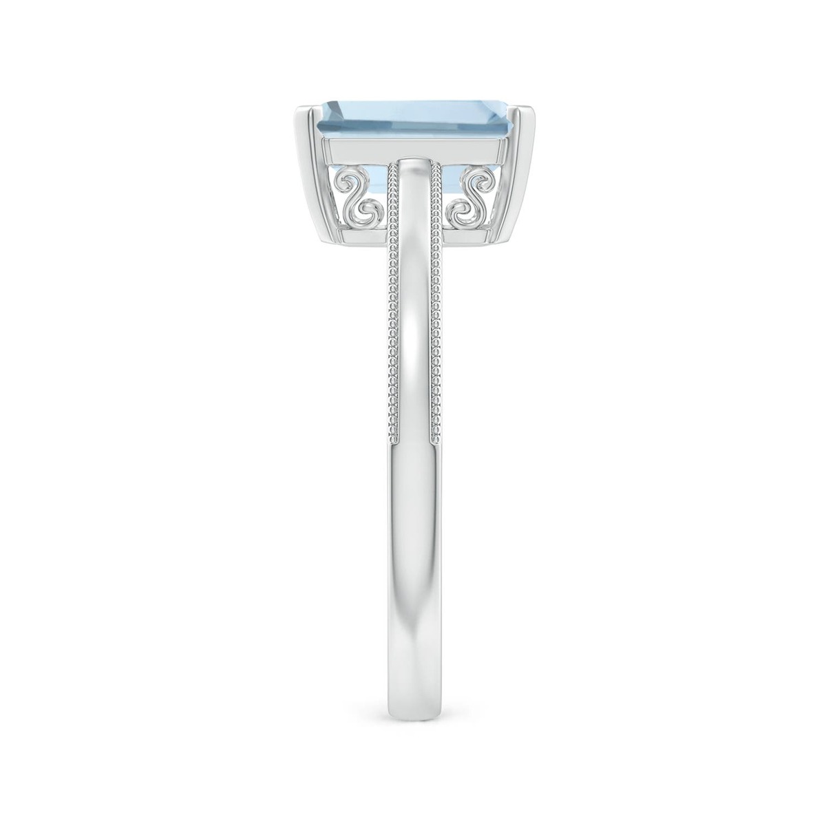 ANGARA Aquamarine Solitaire Ring with Milgrain in Sterling Silver (Size-9x7mm)