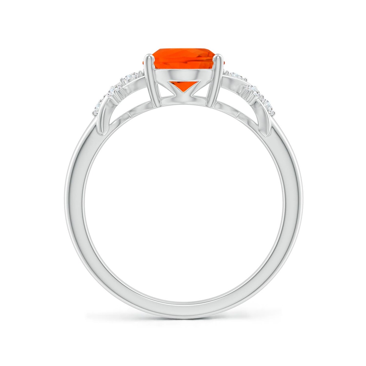ANGARA Fire Opal Solitaire Criss Cross Ring with Diamond in Silver (Size-9x7mm)