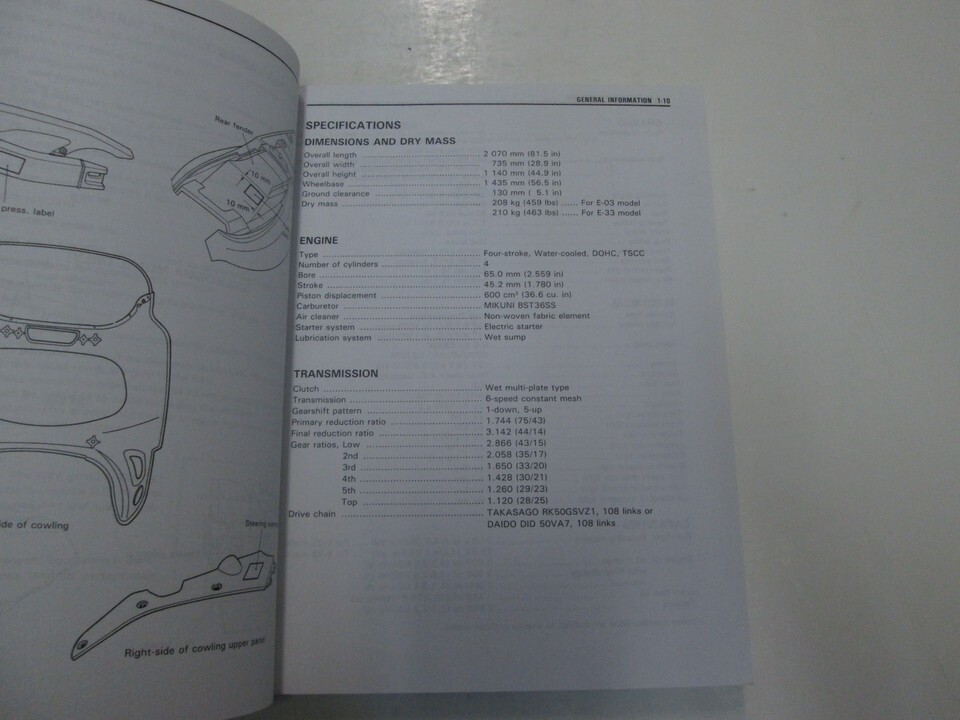 NEW 1992 1993 SUZUKI GSX-R600W SERVICE MANUAL