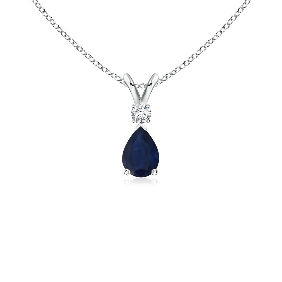 Authenticity Guarantee ANGARA 0.44 Ct Blue Sapphire Teardrop Pendant with Di...