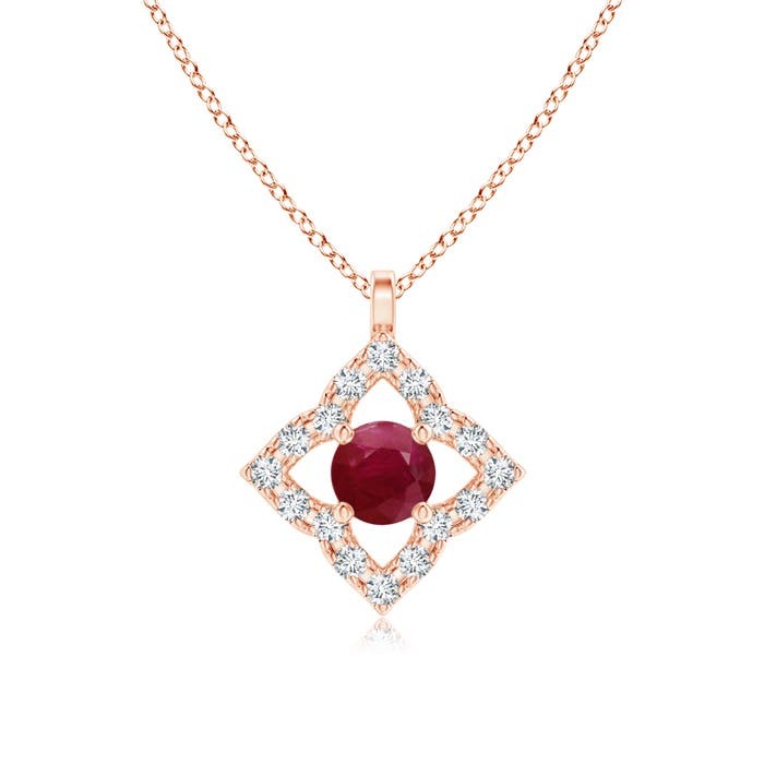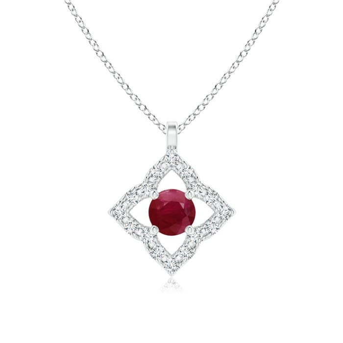 Prong set within a diamond encrusted clover frame is a round ruby that draws the eye with its bold and bright hue. Stylish and elegant, this vintage ruby pendant is designed in 14k solid gold.This Ruby necklace is crafted in Solid Gold ? a stunning choice for lovers of fine Ruby jewelry. Every item comes with an Angara Certificate of Authenticity, which will be sent to you via messages or with the package.