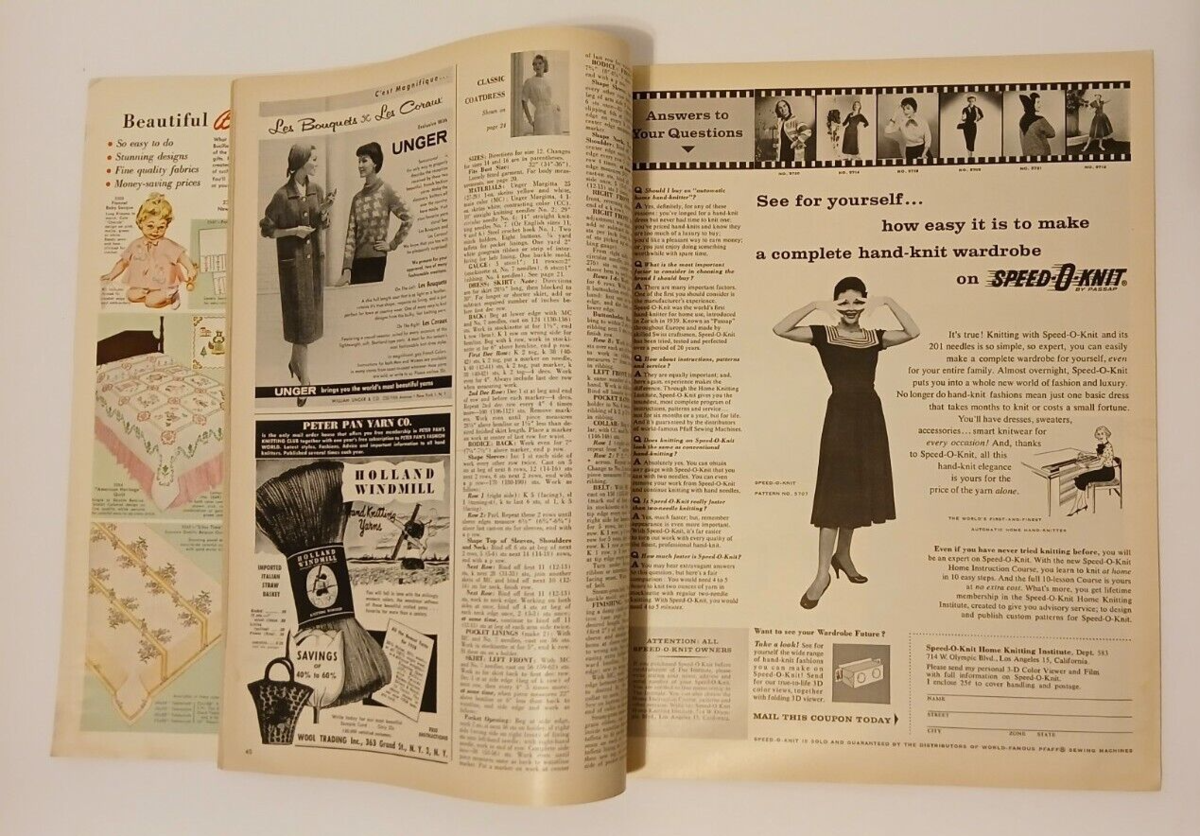 This listing is for an original copy of McCalls Needlework Crafts Magazine. This is the Spring/Summer 1958 issue. The cover has minor shelf wear. The pages are clean. There are no missing or torn pages. Pages may have water stains, and or some yellowing due to age. Some edges may be frayed. There is some tearing along the spine. See photos.