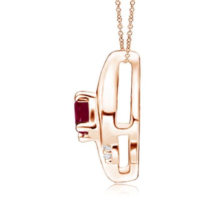 This gorgeous ruby solitaire pendant features an alluring conch-like frame within which sits a prong set, purplish red ruby. Sparkling round diamond accents add to the overall allure of the design. This tilted oval ruby pendant is designed in lustrous 14k solid gold.This Ruby necklace is crafted in Solid Gold ? a stunning choice for lovers of fine Ruby jewelry. Every item comes with an Angara Certificate of Authenticity, which will be sent to you via messages or with the package.