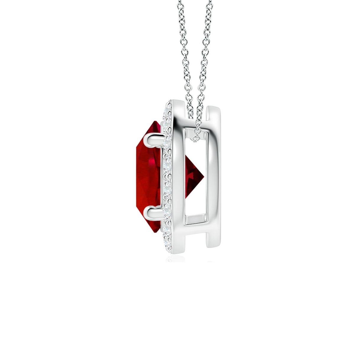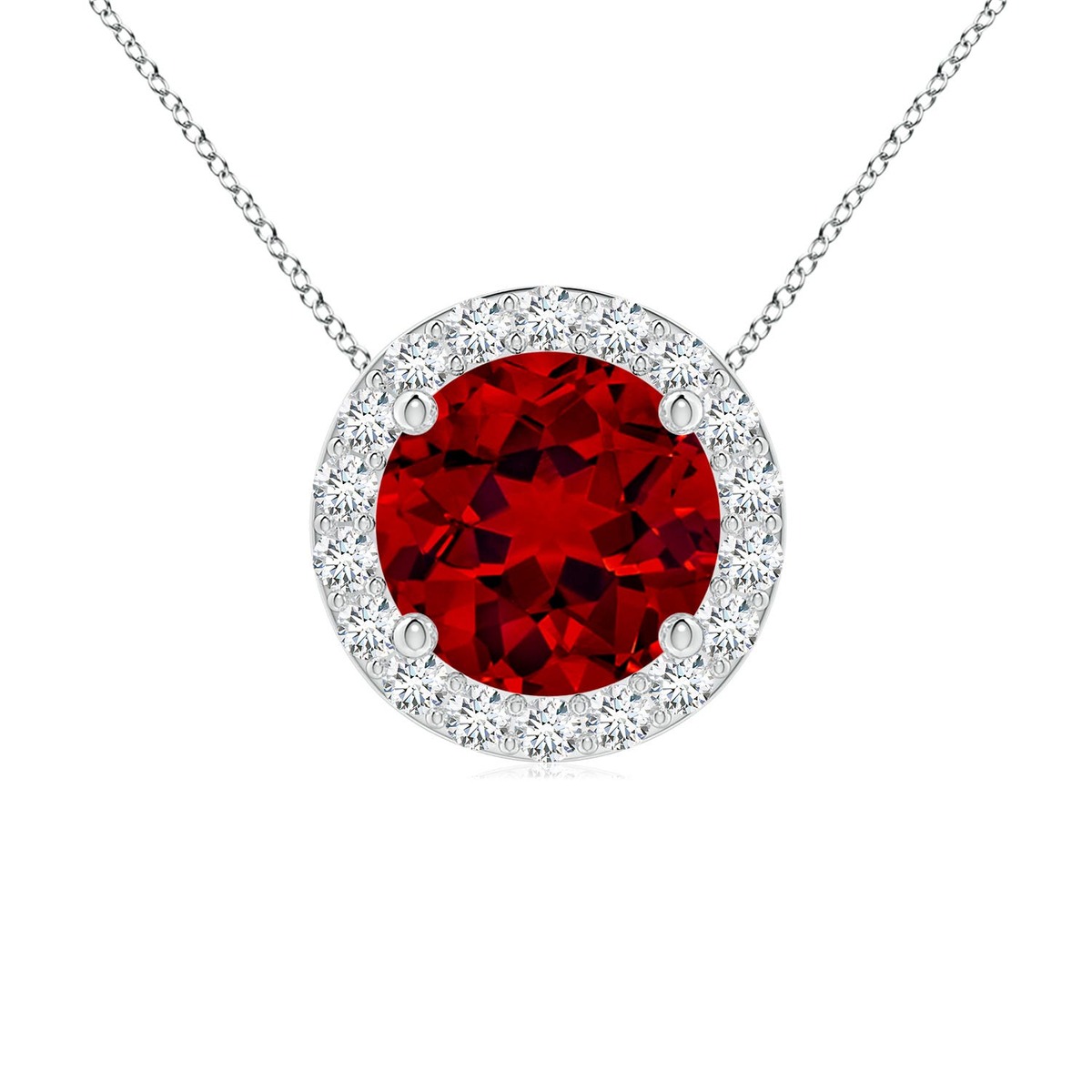 Add just the right amount of sparkle to your look with this vintage-inspired pendant. It showcases a round lab-grown ruby, prong set within a sparkling halo of lab-grown diamonds. This stunning pendant is designed in 14k solid gold.This Ruby necklace is crafted in Solid Gold ? a stunning choice for lovers of fine Ruby jewelry. Every item comes with an Angara Certificate of Authenticity, which will be sent to you via messages or with the package.