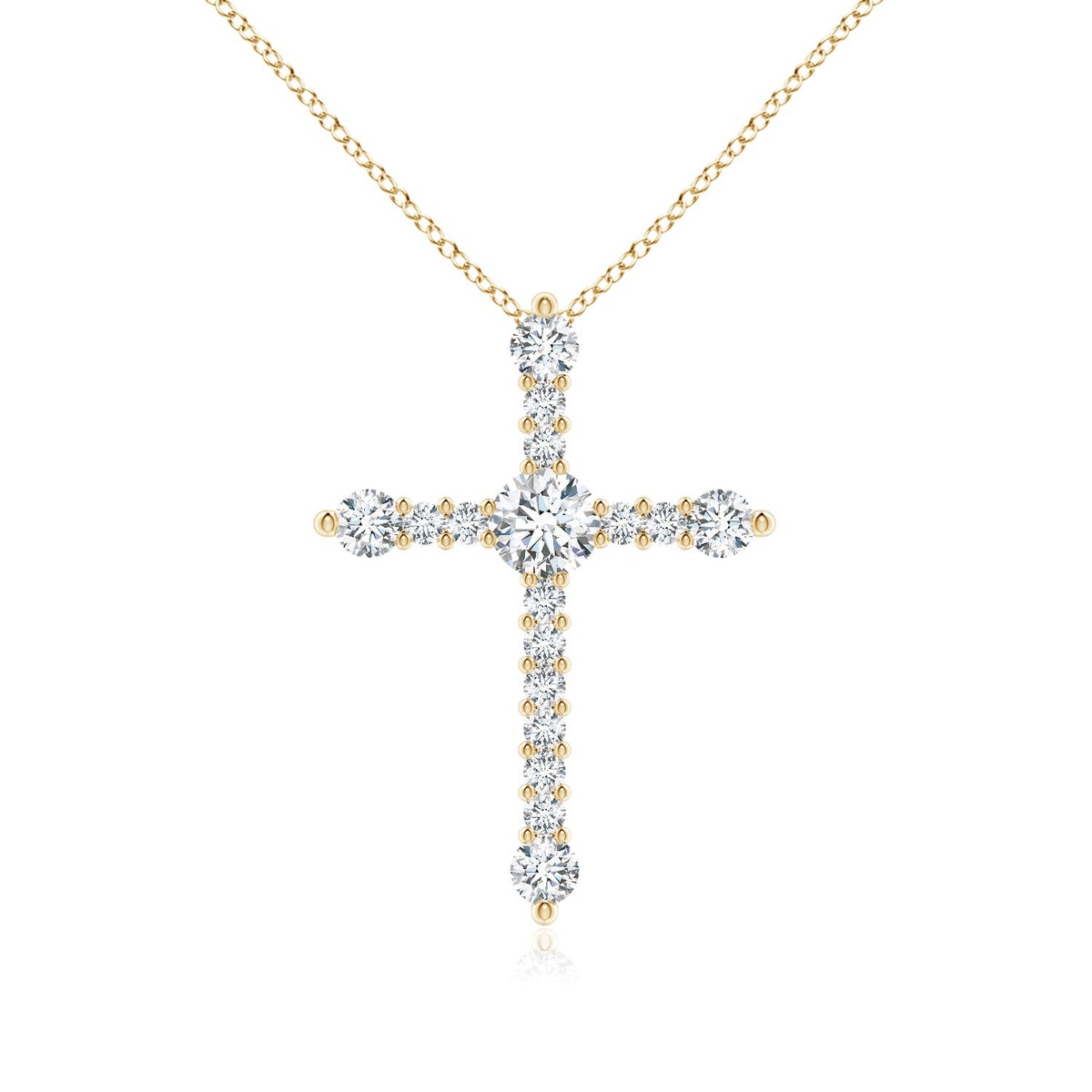 ANGARA 0.99 Ctw Lab Grown Diamond Budded Cross Pendant Necklace in 14K Gold