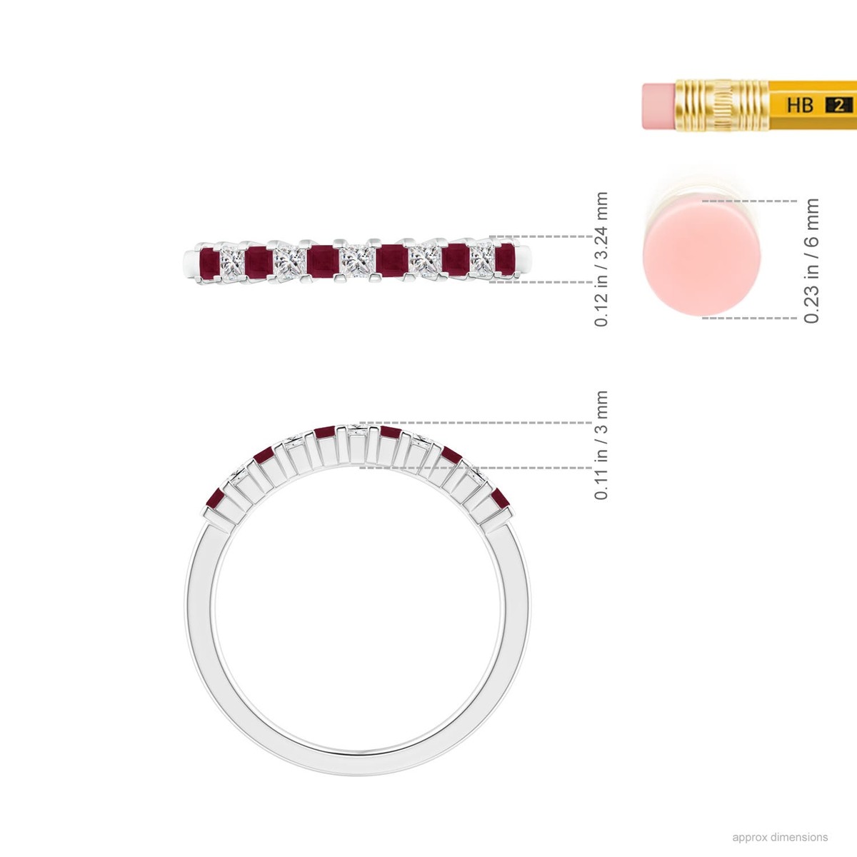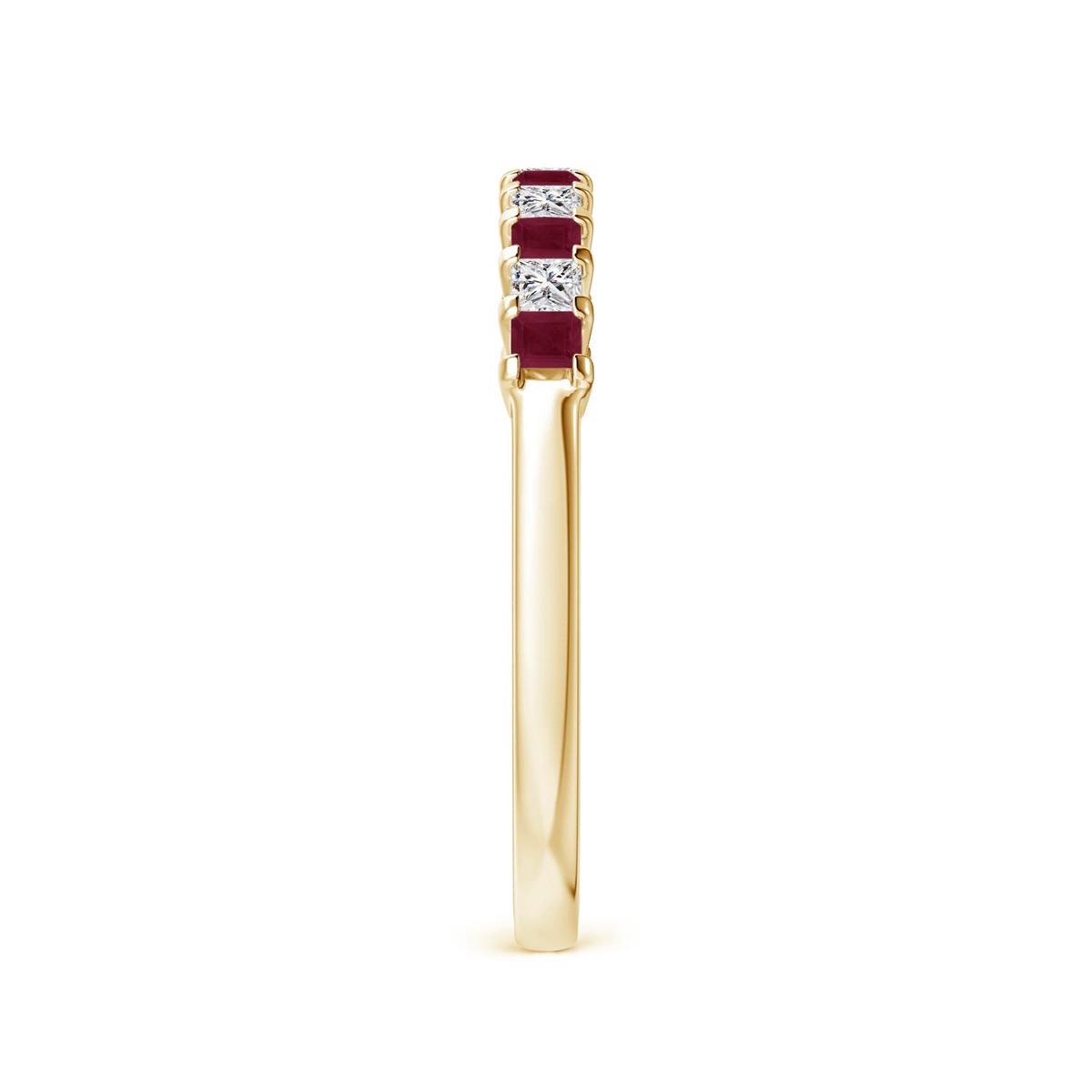 Crafted in 14k solid gold, this square ruby and diamond wedding band is elegant and refined. The ravishing red rubies are combined with princess-cut diamonds in a half eternity. They are mounted in a prong setting and offer a timeless look.This Ruby ring is crafted in Solid Gold ? a stunning choice for lovers of fine Ruby jewelry. Every item comes with an Angara Certificate of Authenticity, which will be sent to you via messages or with the package.