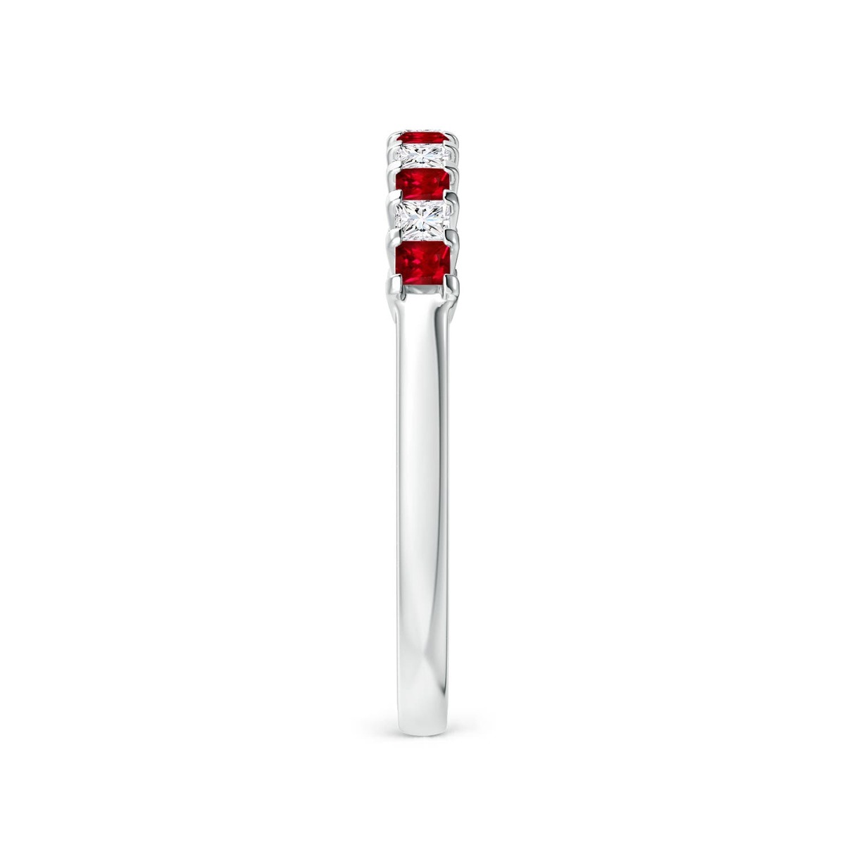 Crafted in 14k solid gold, this square ruby and diamond wedding band is elegant and refined. The ravishing red rubies are combined with princess-cut diamonds in a half eternity. They are mounted in a prong setting and offer a timeless look.This Ruby ring is crafted in Solid Gold ? a stunning choice for lovers of fine Ruby jewelry. Every item comes with an Angara Certificate of Authenticity, which will be sent to you via messages or with the package.