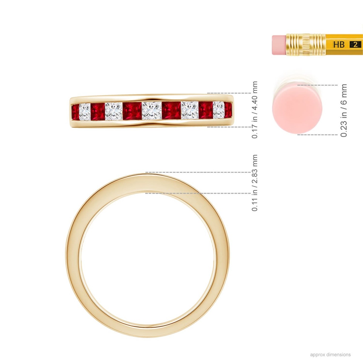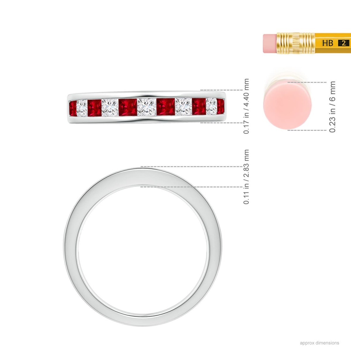 Enticing square rubies and princess-cut dazzling diamonds alternatively adorn this channel set half eternity band. The bold red rubies and white diamonds exude a stunning contrast and are set in 14k solid gold.This Ruby ring is crafted in Solid Gold ? a stunning choice for lovers of fine Ruby jewelry. Every item comes with an Angara Certificate of Authenticity, which will be sent to you via messages or with the package.