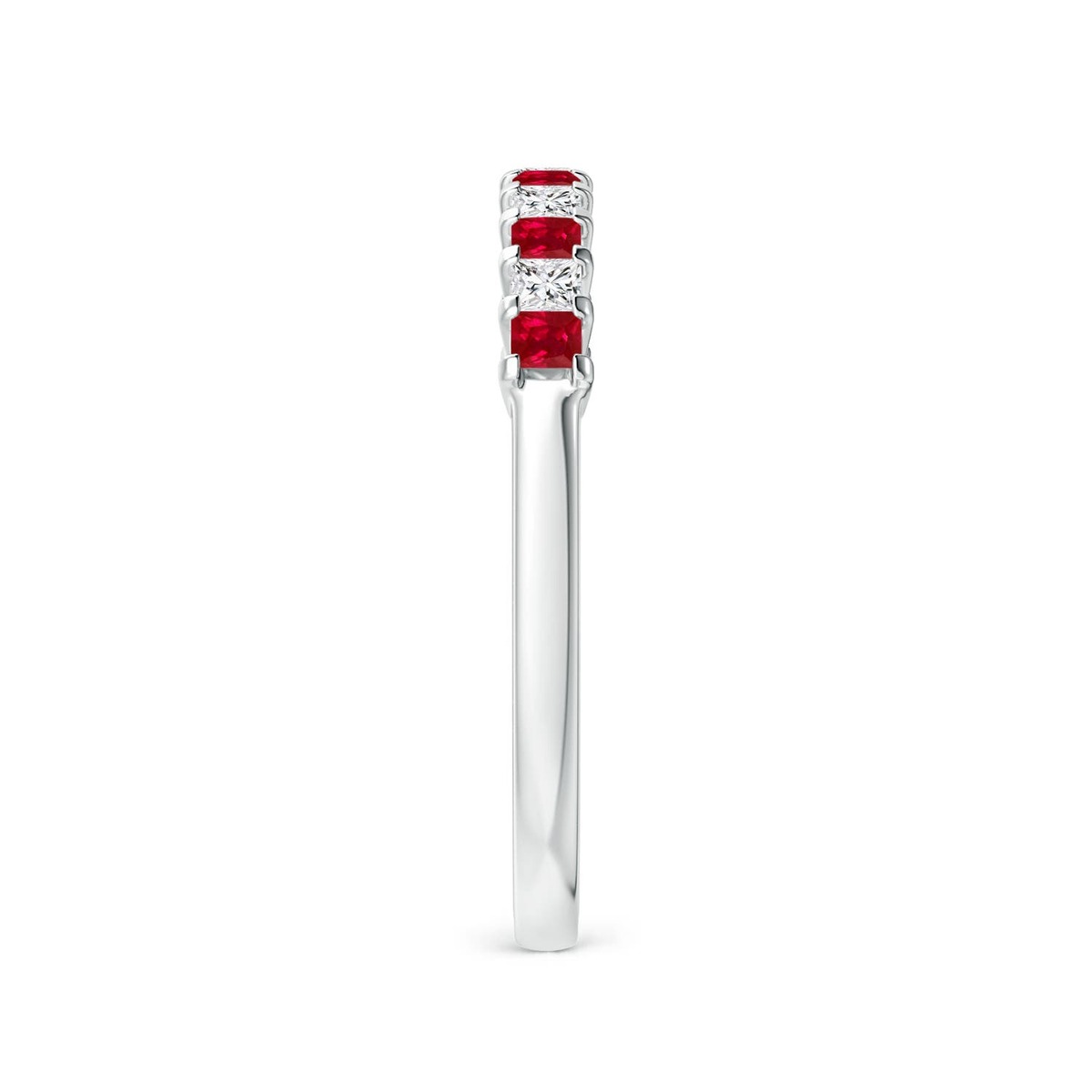 Crafted in 14k solid gold, this square ruby and diamond wedding band is elegant and refined. The ravishing red rubies are combined with princess-cut diamonds in a half eternity. They are mounted in a prong setting and offer a timeless look.This Ruby ring is crafted in Solid Gold ? a stunning choice for lovers of fine Ruby jewelry. Every item comes with an Angara Certificate of Authenticity, which will be sent to you via messages or with the package.
