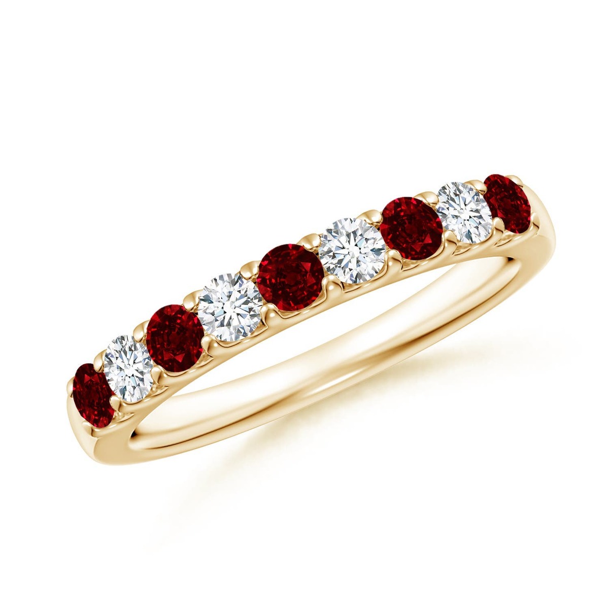 ANGARA Natural Ruby and Diamond Half Eternity Ring in 14K Gold (AAA | 1.03 Ct)