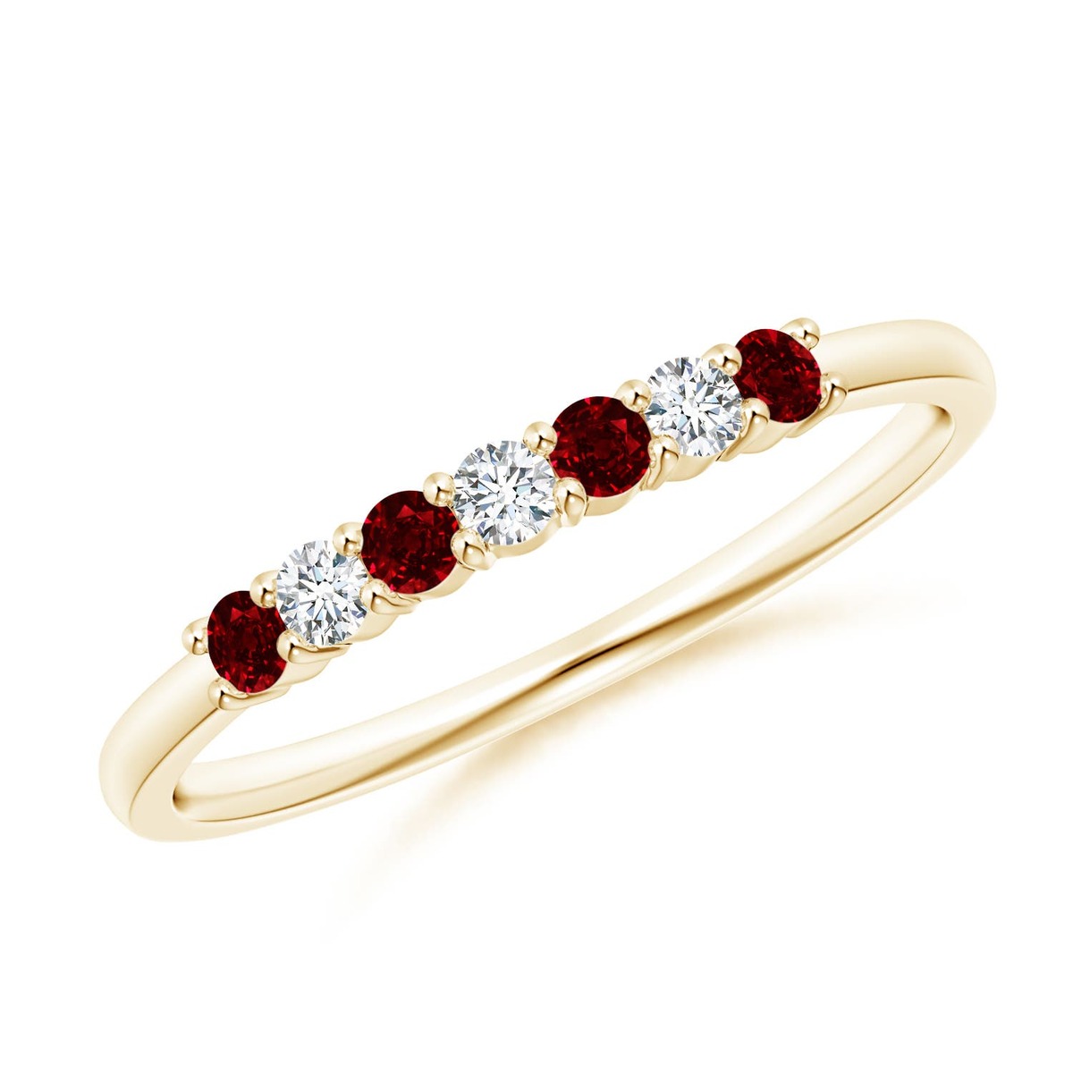 ANGARA Half Eternity Ruby and Diamond Wedding Ring in 14K Gold (AAAA | 0.31 Ct)