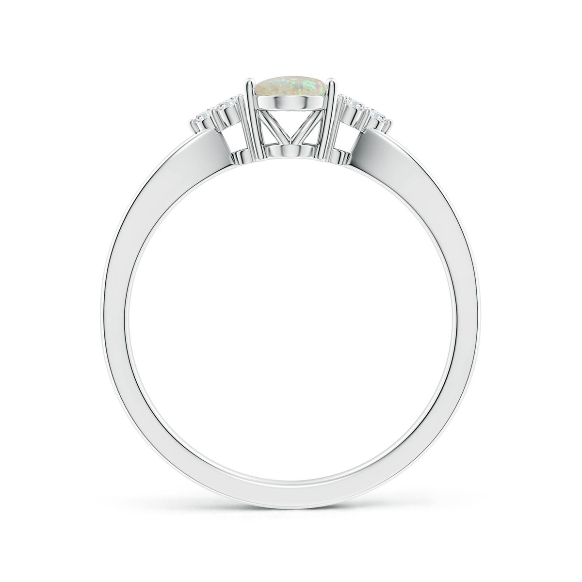 Angara Oval Opal Split Shank Ring with Trio Diamonds in 14K Solid Gold (7x5MM)