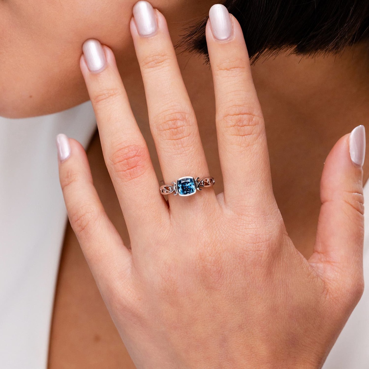 Authenticity Guarantee Angara Natural Cushion 1.1Ct London Blue Topaz Solita...