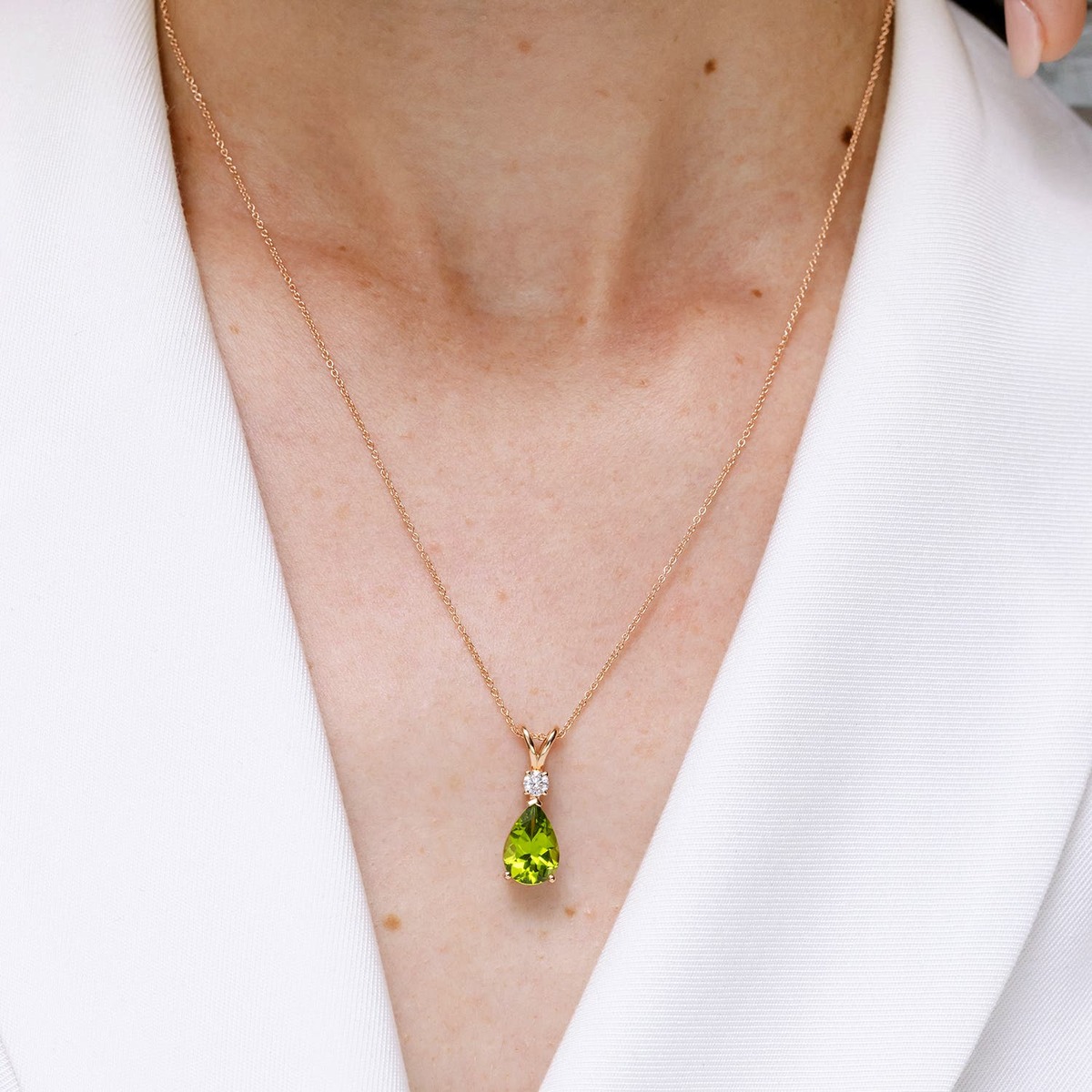 The pear-shaped peridot has an elegant, bold and dramatic look. It's a stunning fusion of the marquise cut and the classic round cut. Perfect for adding a touch of sophistication to your outfit.