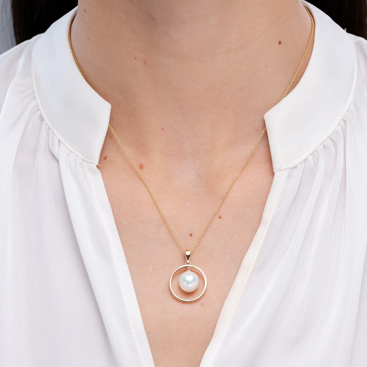 ANGARA 9MM Freshwater Cultured Pearl Pendant Necklace for Women in 14K Gold (AA)