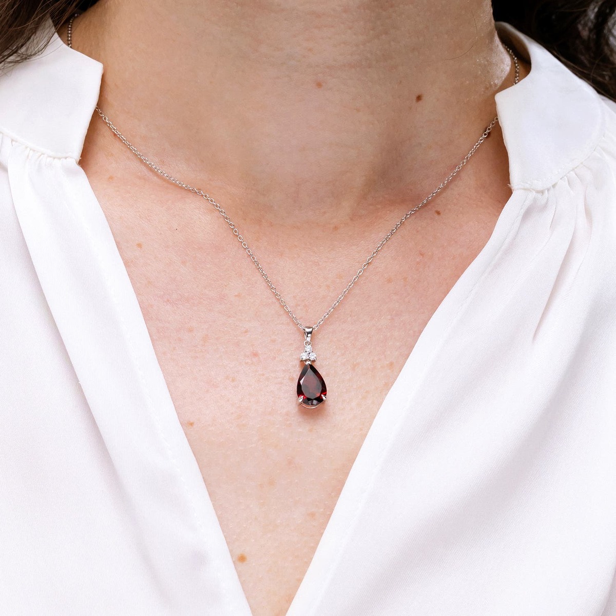 The pear-shaped garnet has an elegant, bold and dramatic look. It's a stunning fusion of the marquise cut and the classic round cut. Perfect for adding a touch of sophistication to your outfit.
