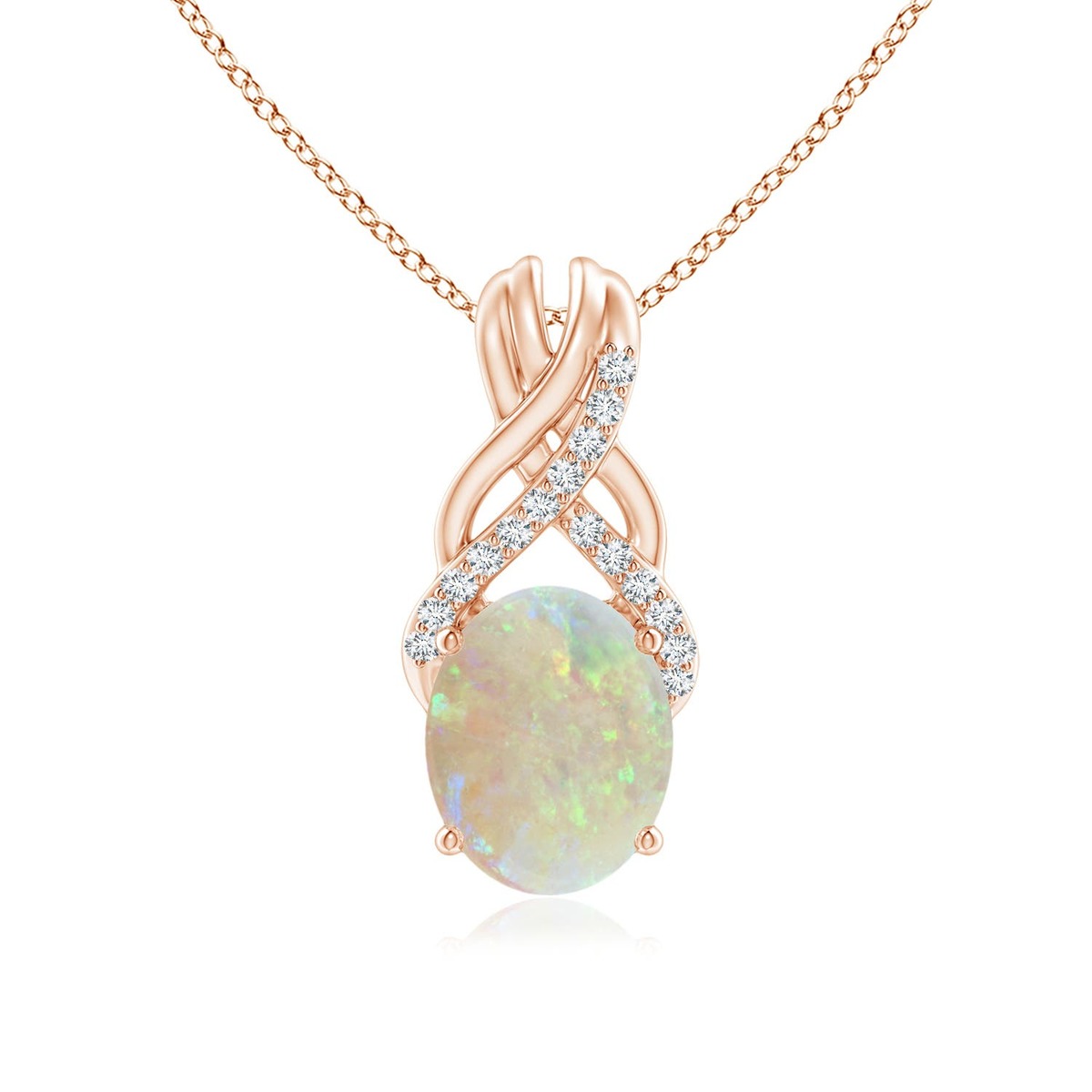 ANGARA 1.55 Ctw Oval Opal Criss Cross Pendant Necklace with Diamonds in 14K Gold