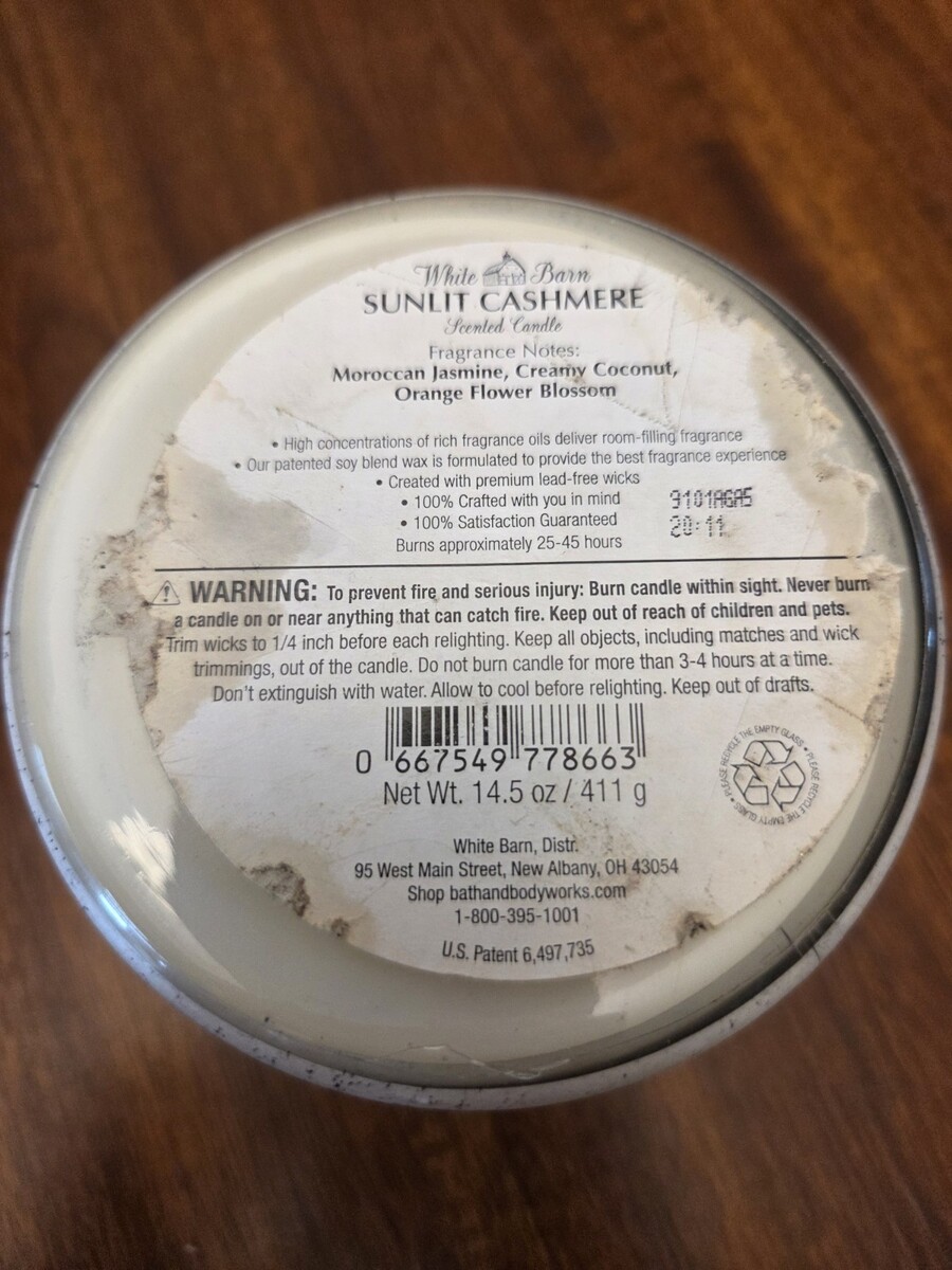 USED* White Barn SUNLIT CASHMERE Scented 3-Wick Bath Body Works BBW Candle 14.5 oz