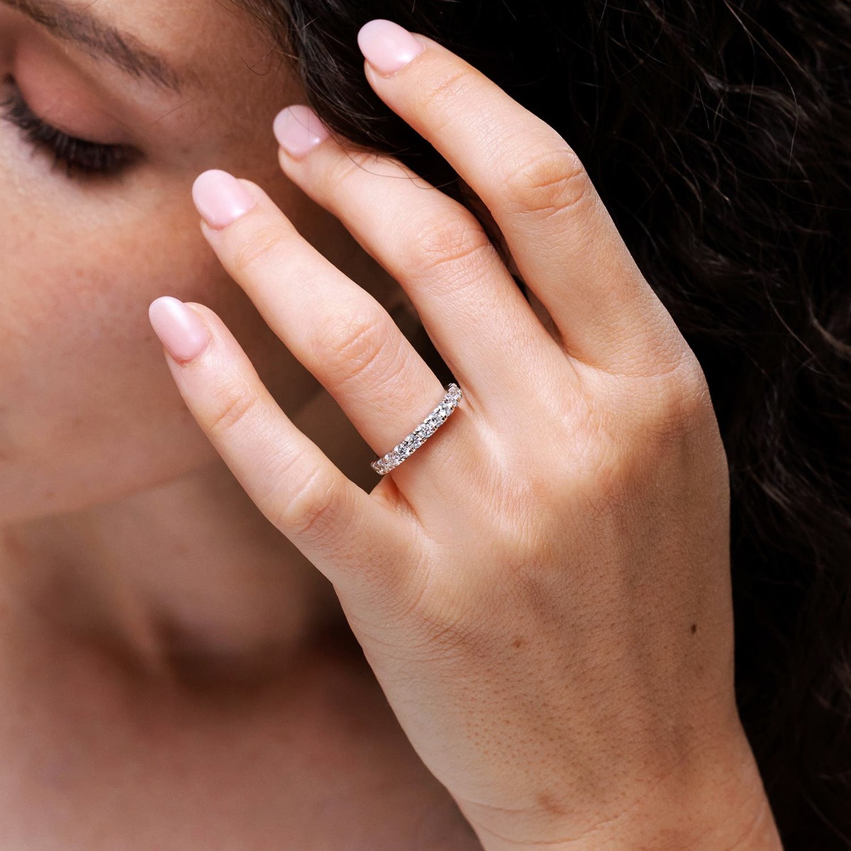 This white diamond non-eternity ring can elevate pretty much any ensemble. Adorned with a row of sparkling gems, it exudes the perfect balance of style and glamour. Whether you wear it as a solo statement or pair with your other favorites, this 14k solid gold non-eternity ring is sure to spark a conversation or two.