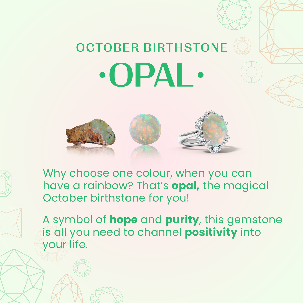 Features:0.6 Carat Opal and 0.112 Carat Diamond.