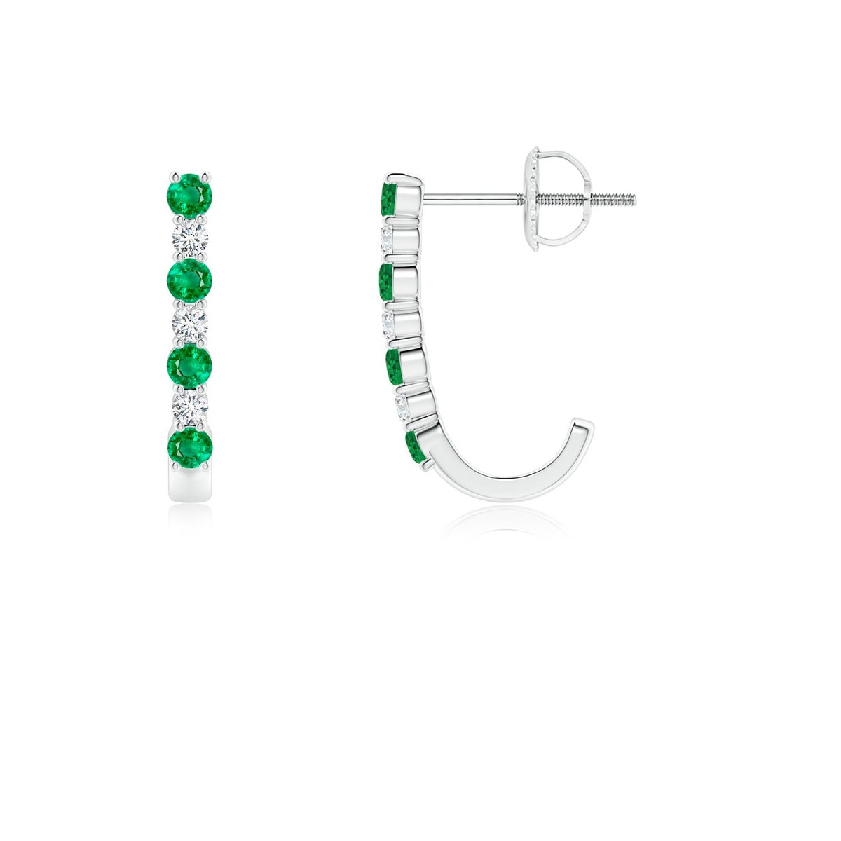 ANGARA Natural 0.44 Ct Emerald and Diamond J-Hoop Earrings in 14K Solid Gold